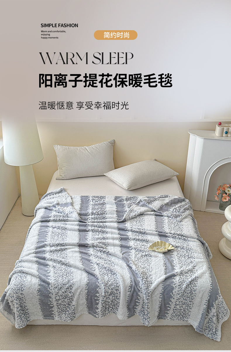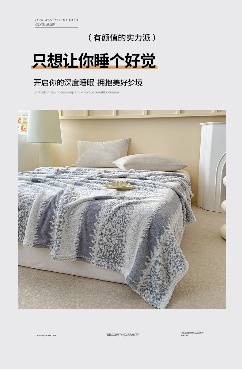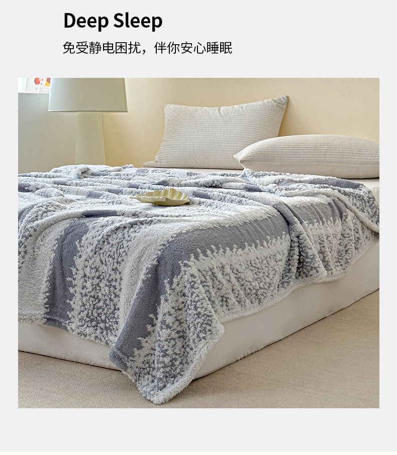 跨境新款阳离子提花镂空双层镂空塔芙绒羊羔绒毛毯加厚保暖盖毯