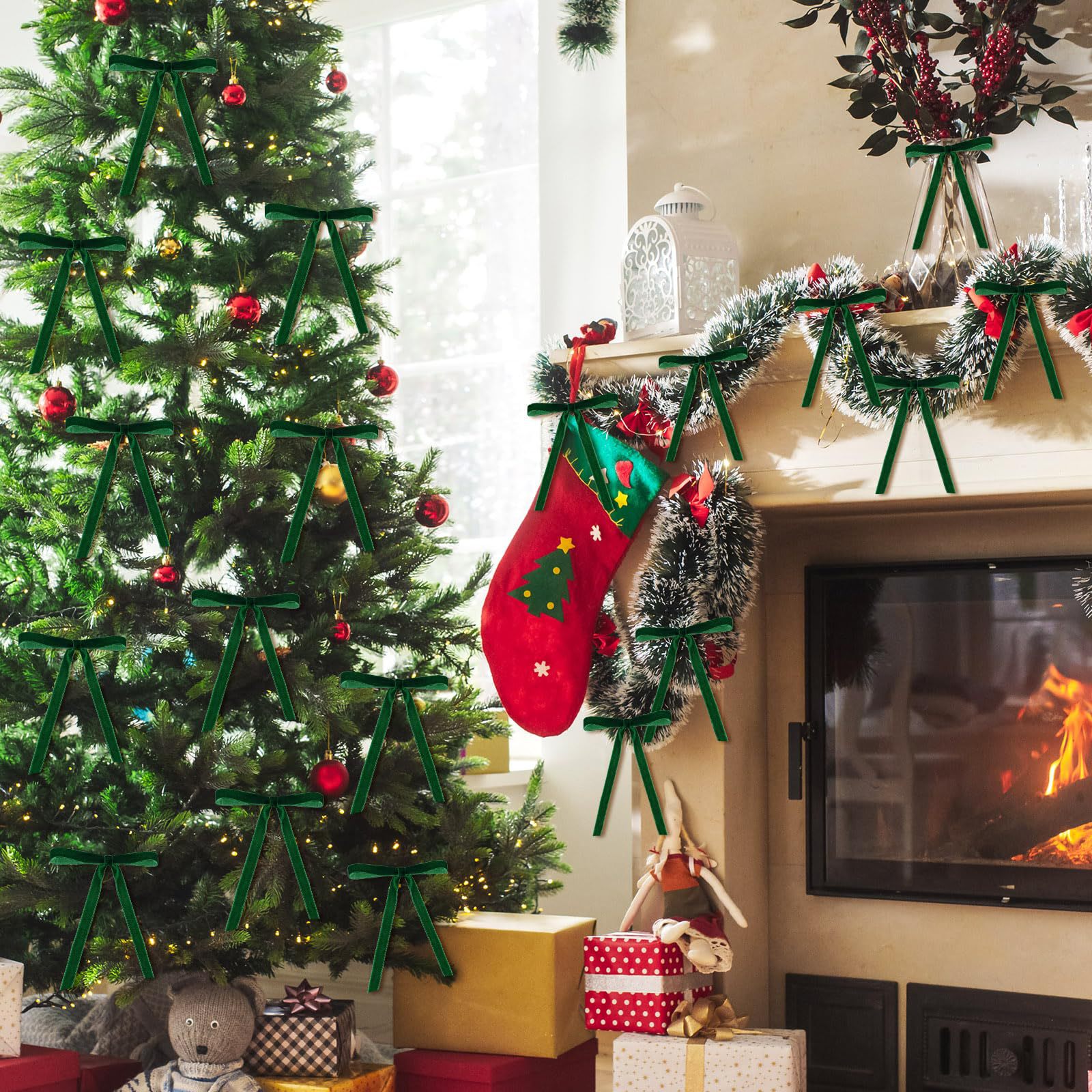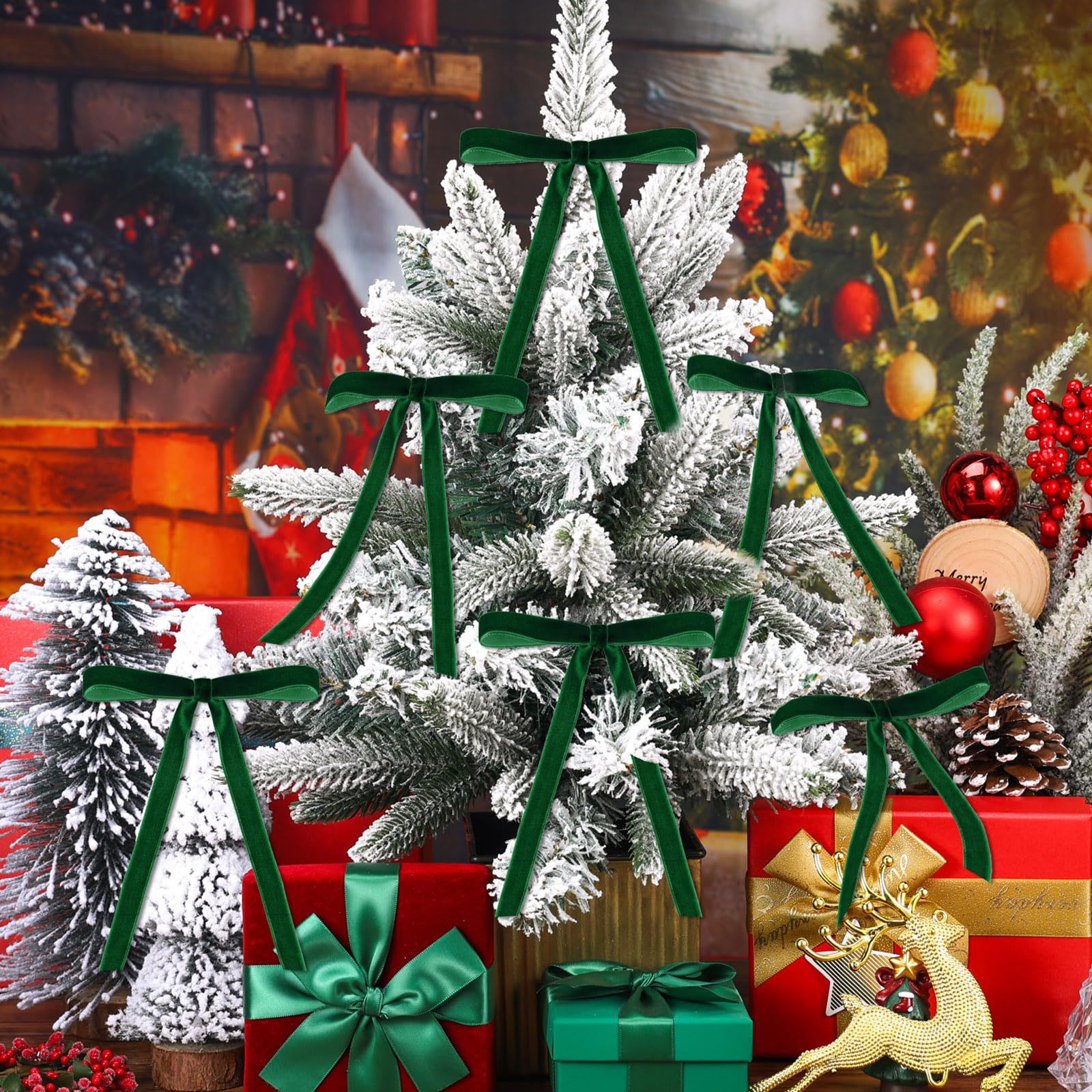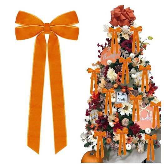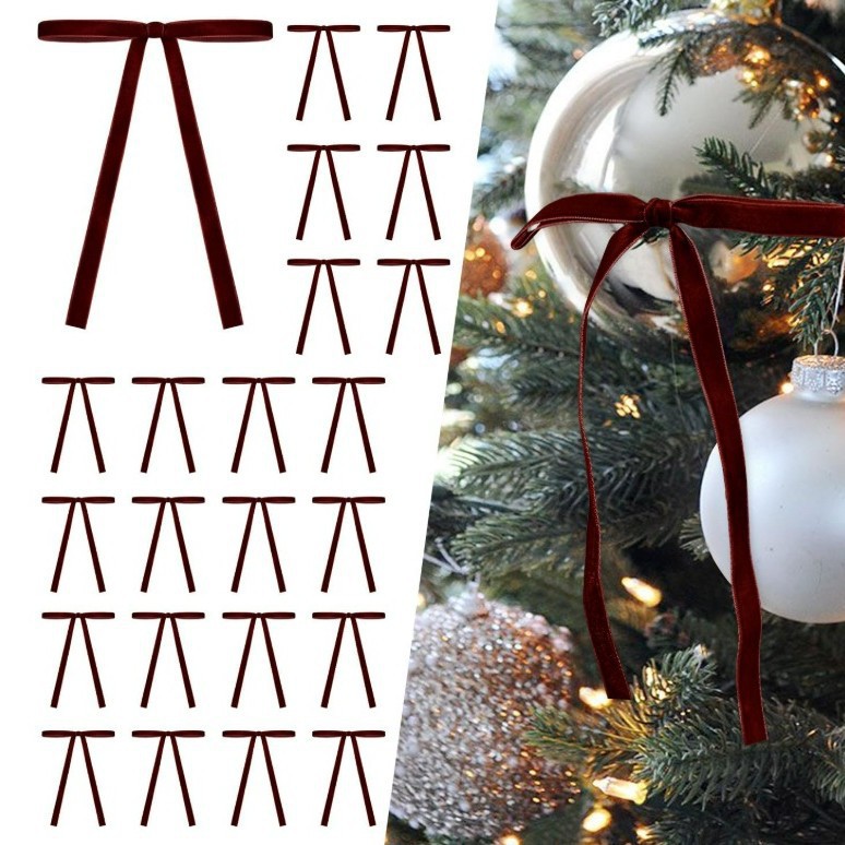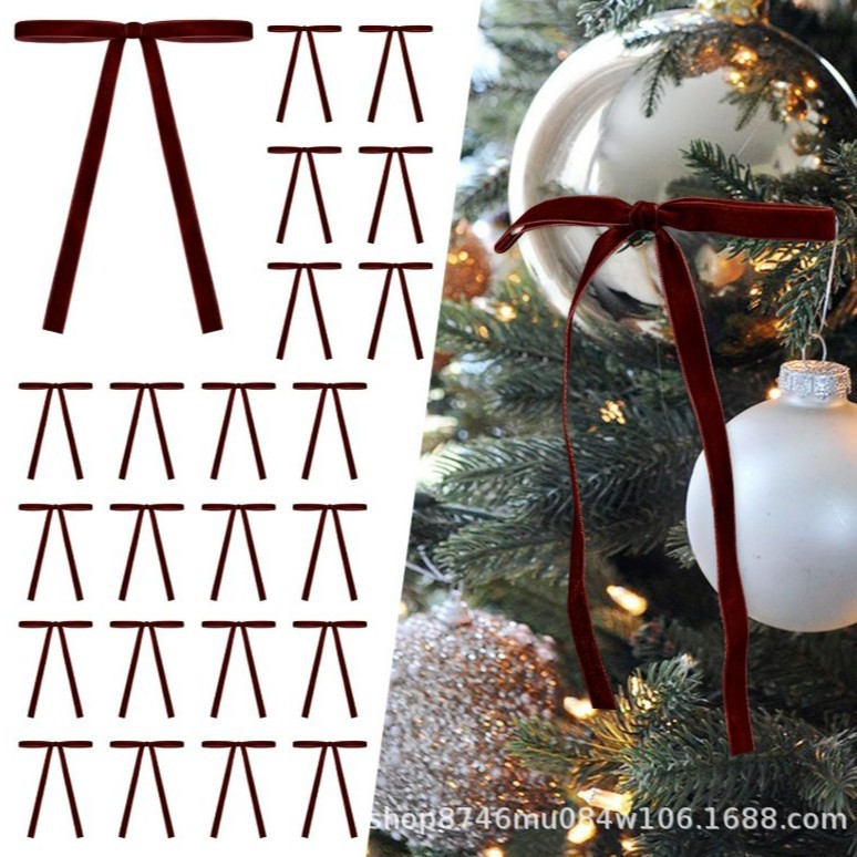 跨境现货2.5cm天鹅绒丝带蝴蝶结圣诞树装饰圣诞节日场景挂饰挂件