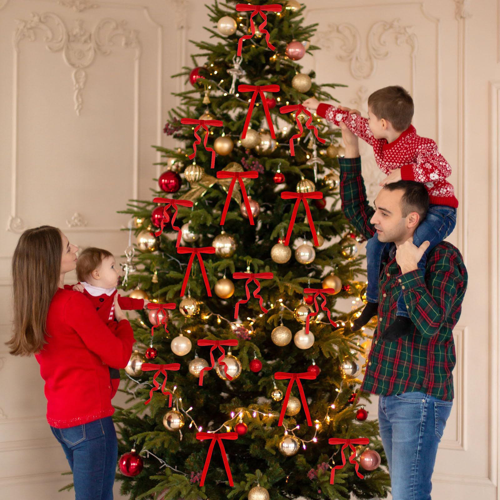 Dou Rui クロスボーダー クリスマス デコレーション 12 パック ワイド ボウ ストラップ クリスマス ツリー デコレーション アクセサリー ペンダント