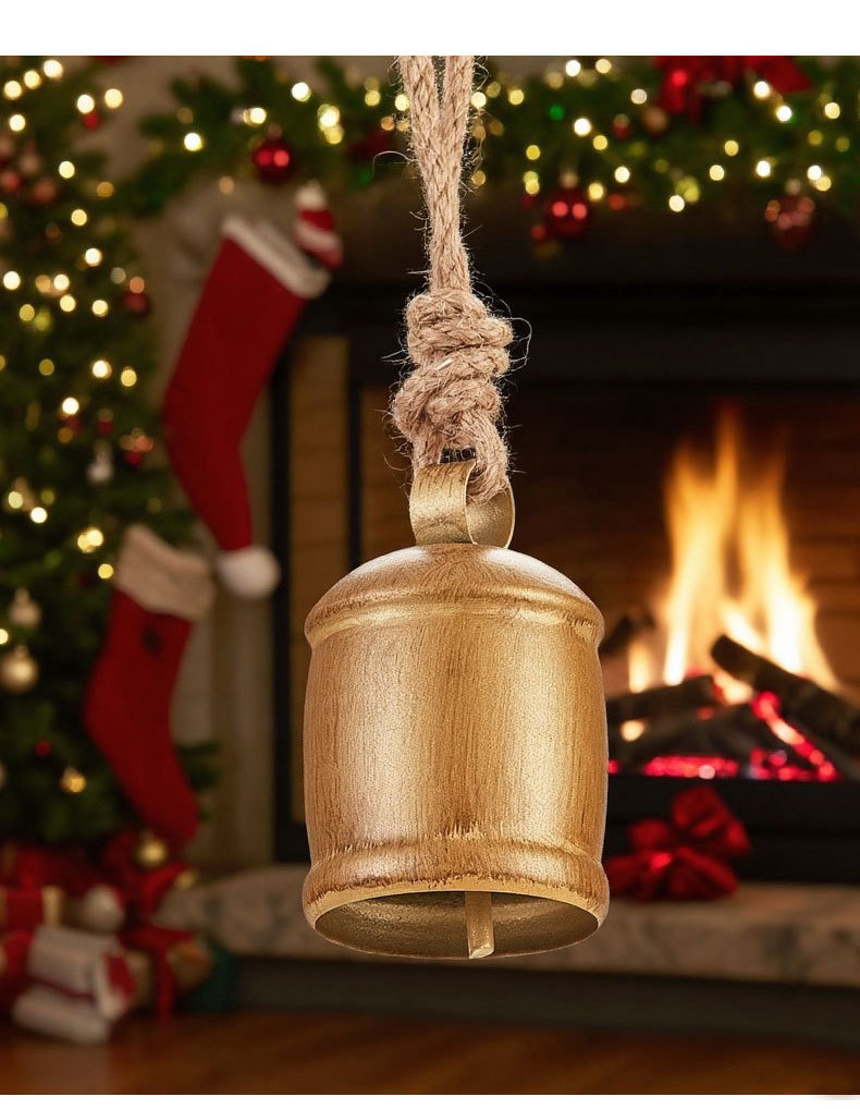 2025圣诞装饰品麻绳铃铛乡村风格复古破旧金属牛铃铛圣诞节小礼品