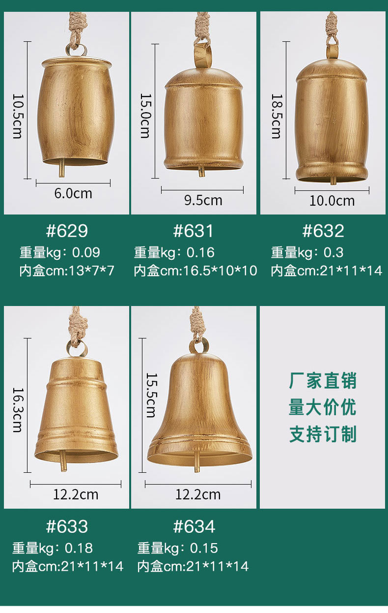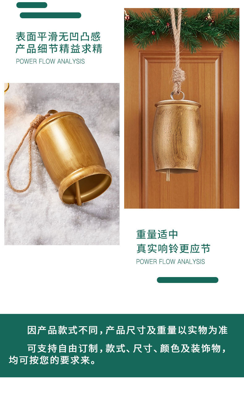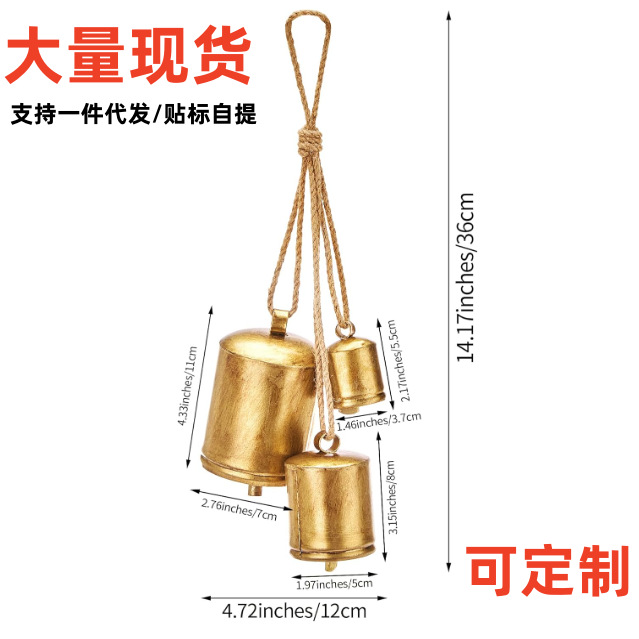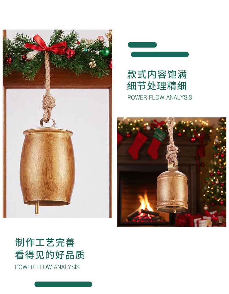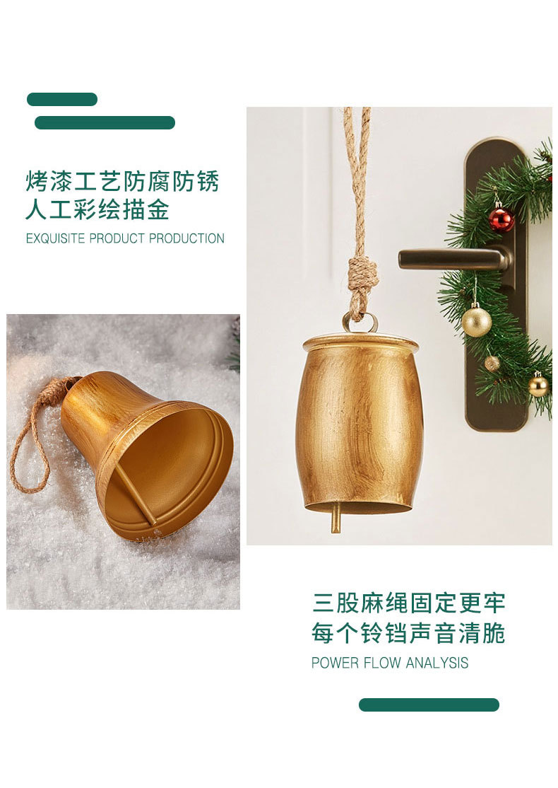 亚马逊圣诞麻绳铃铛装饰品乡村风复古破旧金属牛铃铛铁皮桶铃铁艺