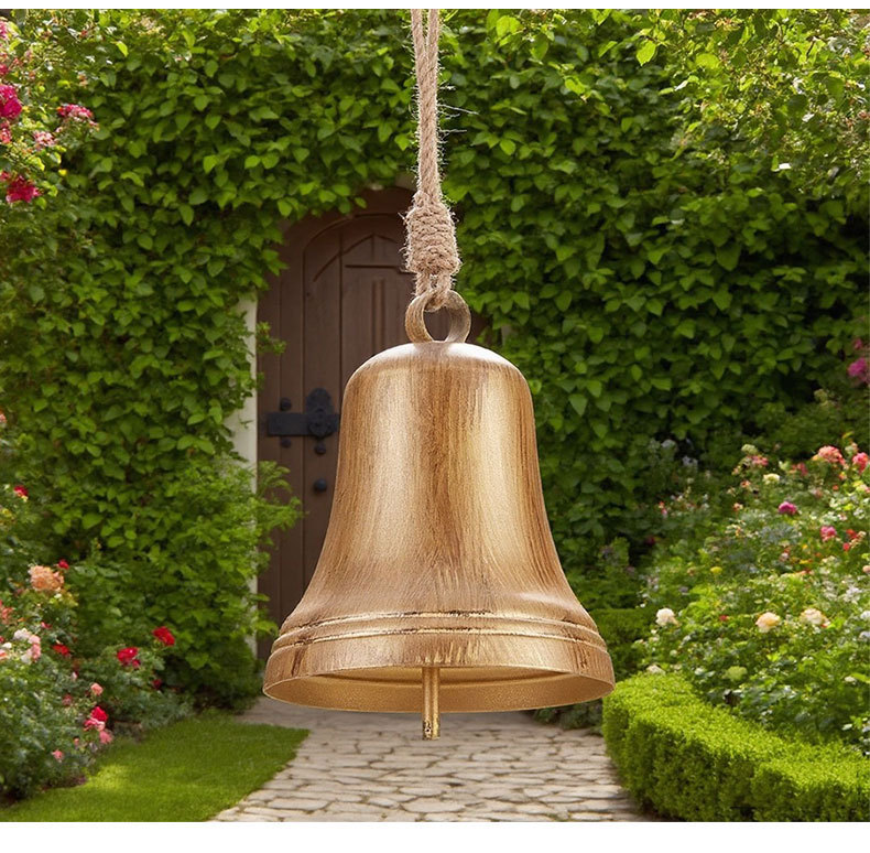 風鈴ペンダントカウベル レトロ麻ロープ金属ベル庭中庭クリスマス装飾クリスマスツリーベルアイアンアート
