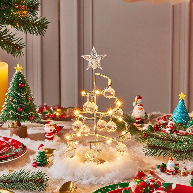 クリスマス装飾電気メッキ鉄ツリー LED 発光クリスタルクリスマスツリーデスクトップアレンジメントクリスマスイブパーティー用品