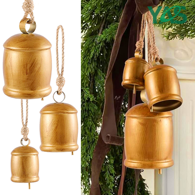 2025 クリスマス装飾麻ロープベルカントリースタイルレトロみすぼらしい金属牛ベルクリスマス小さなギフト