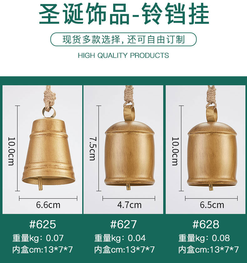 亚马逊热卖装饰品圣诞节铃铛套装 复古手工仿古破皮圣诞挂铃金属