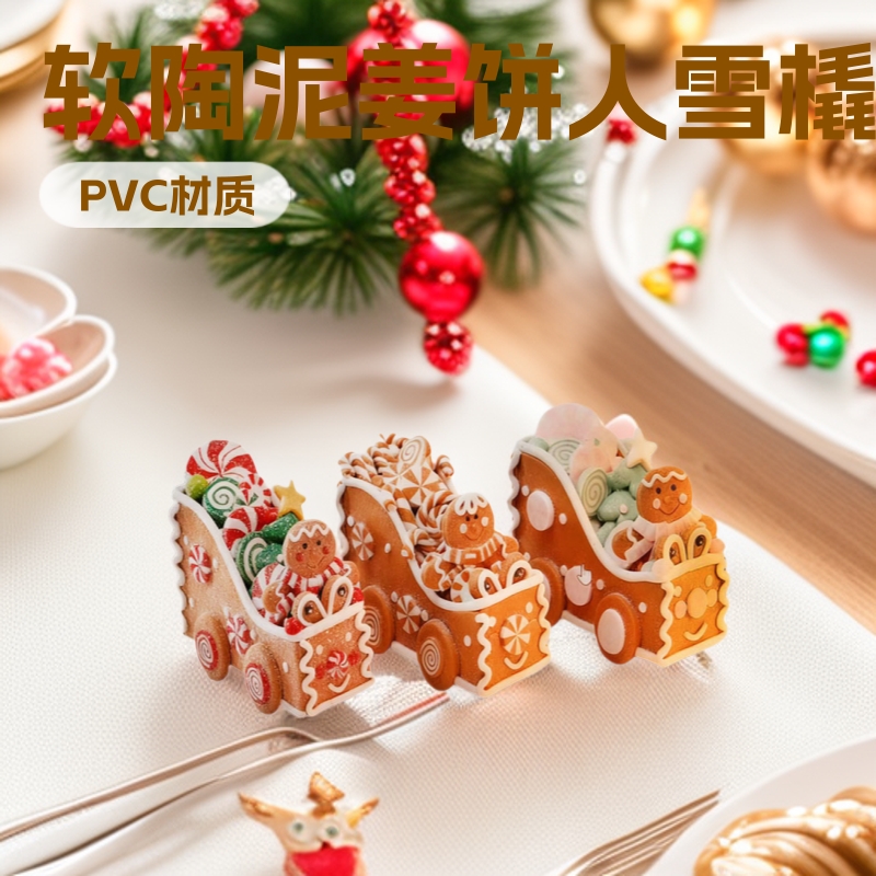 跨境圣诞节装饰品软陶泥姜饼人雪橇车橱窗派对圣诞节小礼物摆件