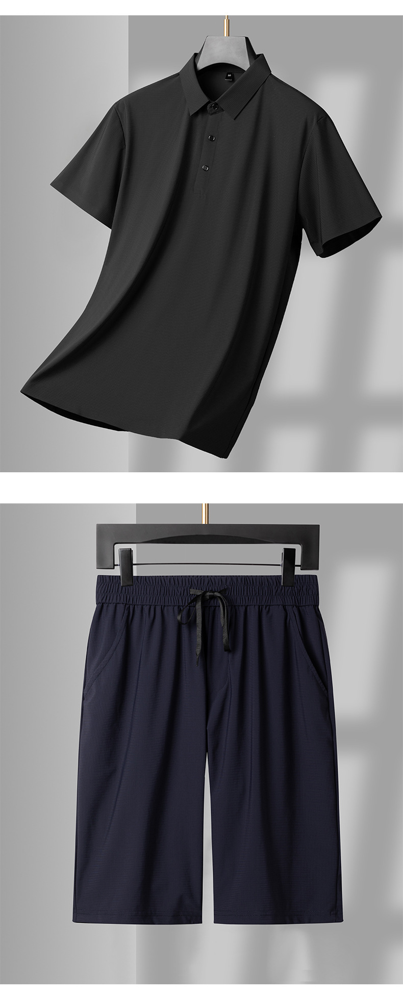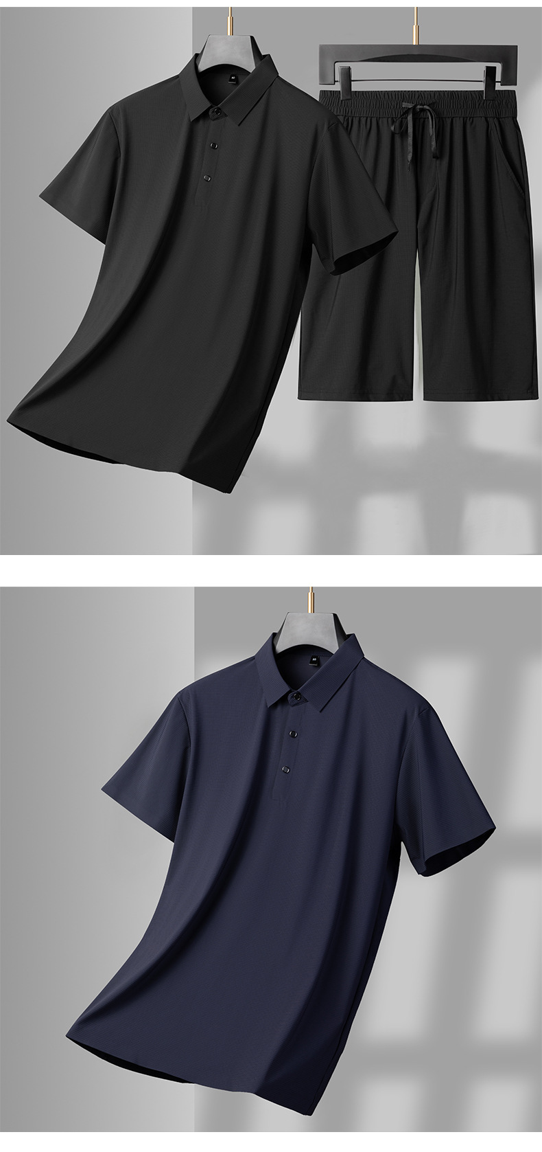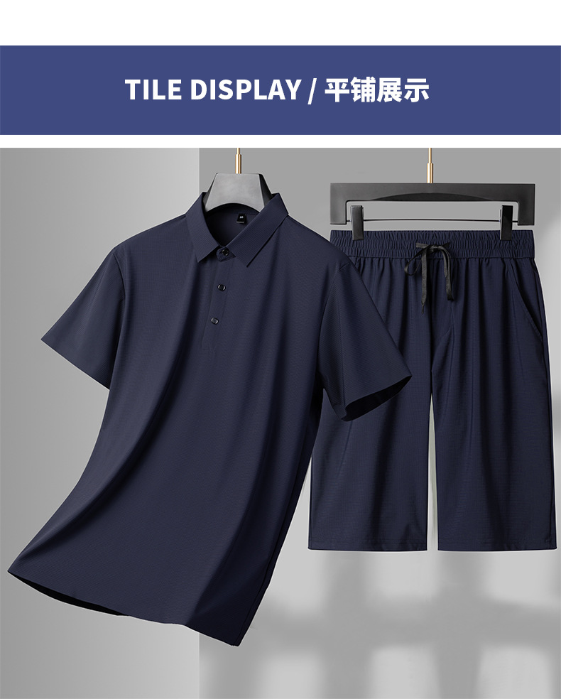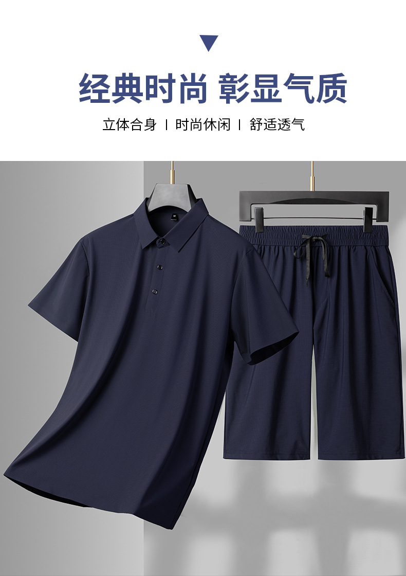 ウッドペッカーアイスシルククールシームレス半袖ショーツスーツ夏中高年男性薄型通気性カジュアルお父さん着用