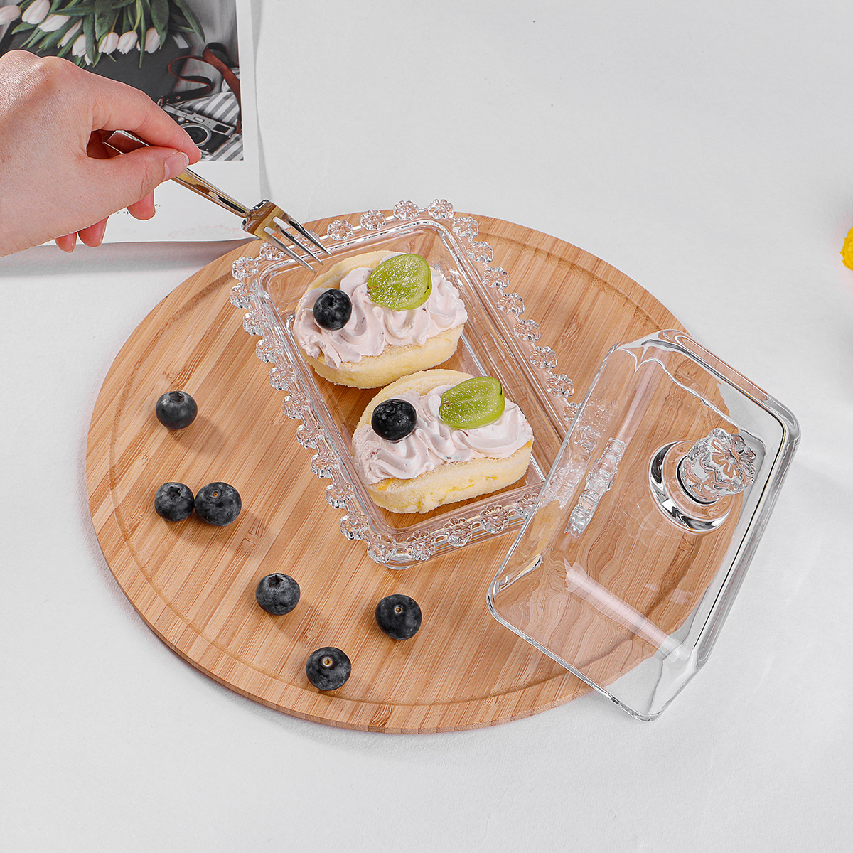 花海珠点ガラスバター皿長方形バターケース防塵蓋付きチーズデザートトレイケーキ卸売り