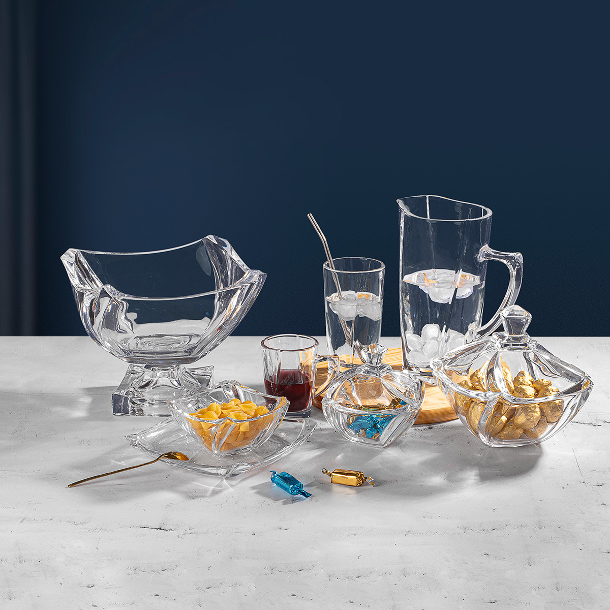 創意的な高足果物皿KTV応客透明ガラストレーキャンディー皿甜品皿客間茶何置物