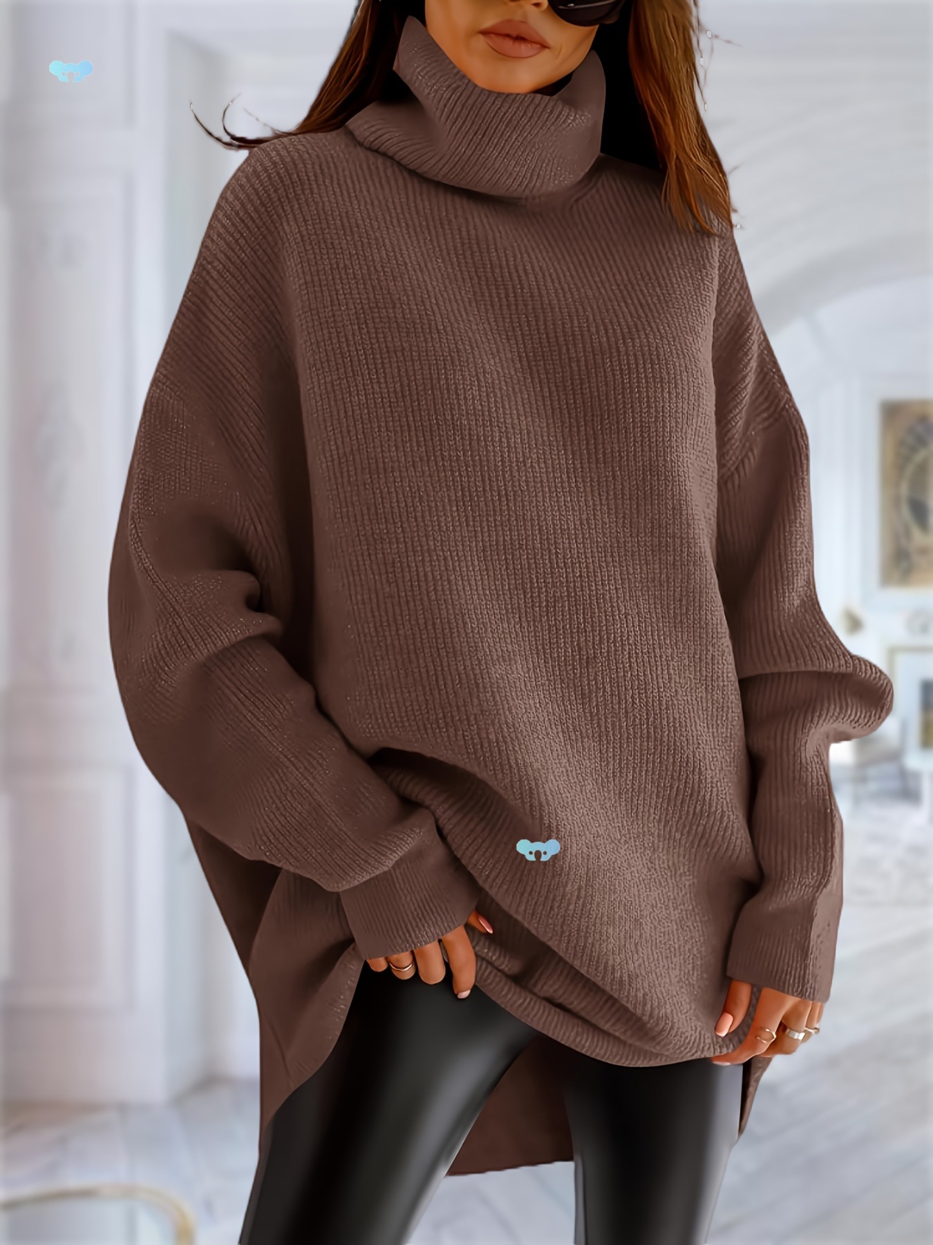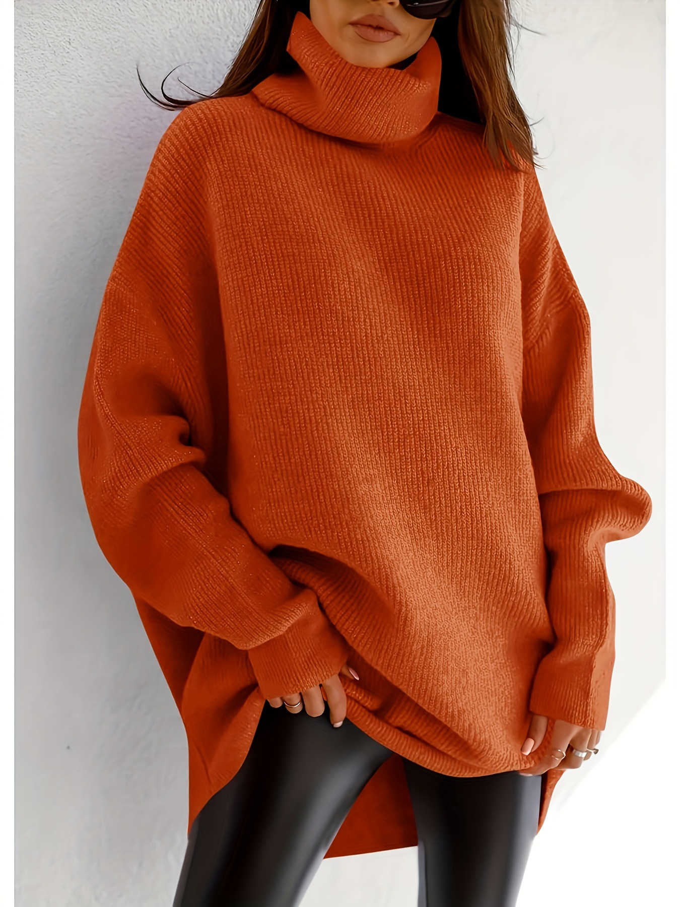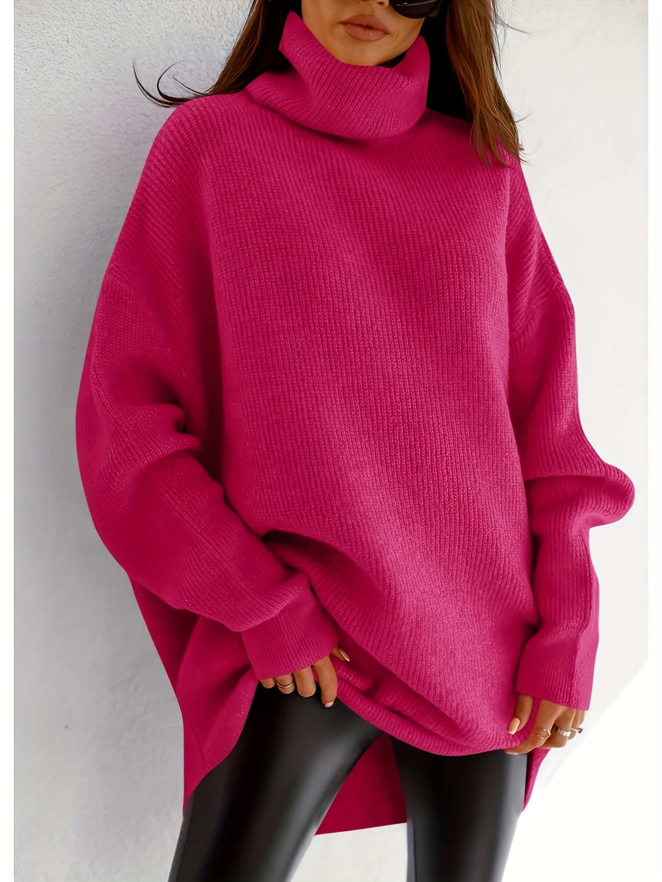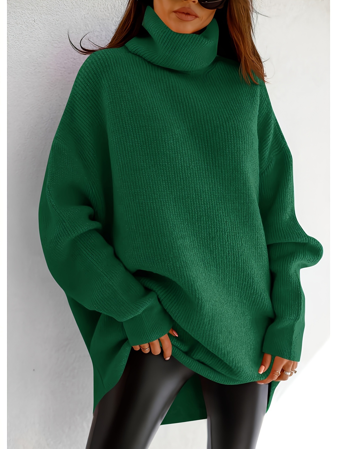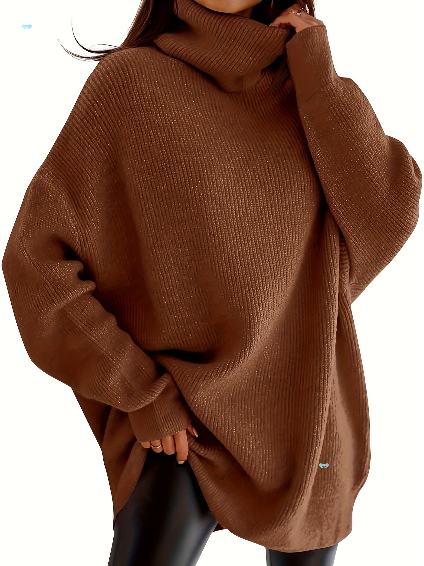 レディース チャンキー バットウィング タートルネック セーター オーバーサイズ ルーズ