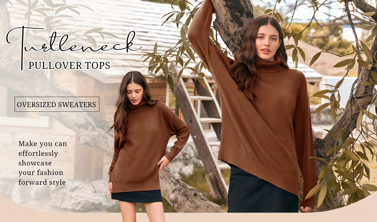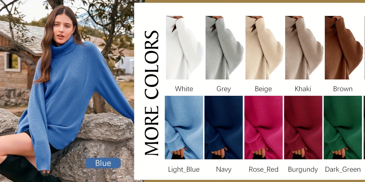 Women's Cozy Oversized Turtleneck Sweater Batwing Chunky跨境
