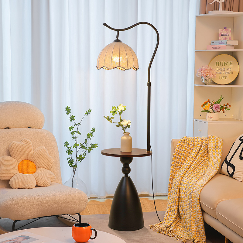 中世無垢材フロアランプレトロリビングルームソファの横にフレンチライト高級ハイエンド寝室の棚テーブルランプ新しいスタイル