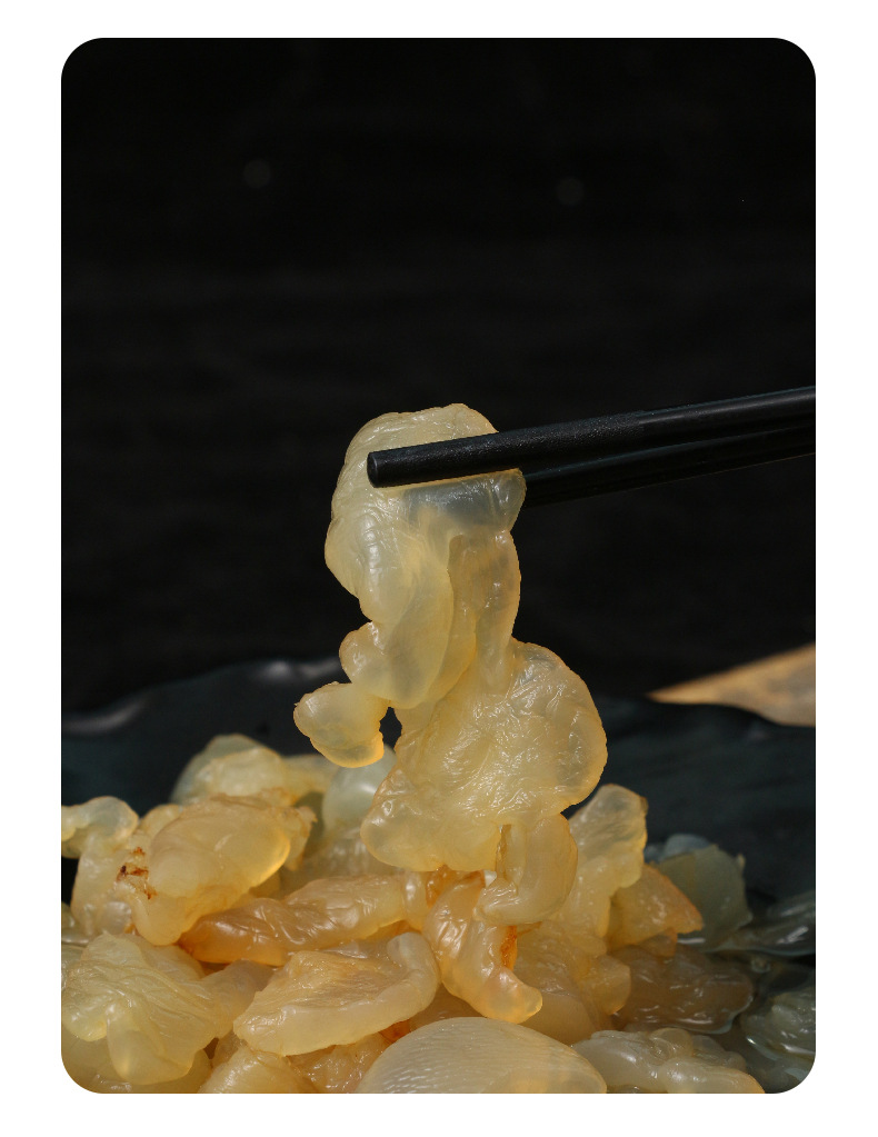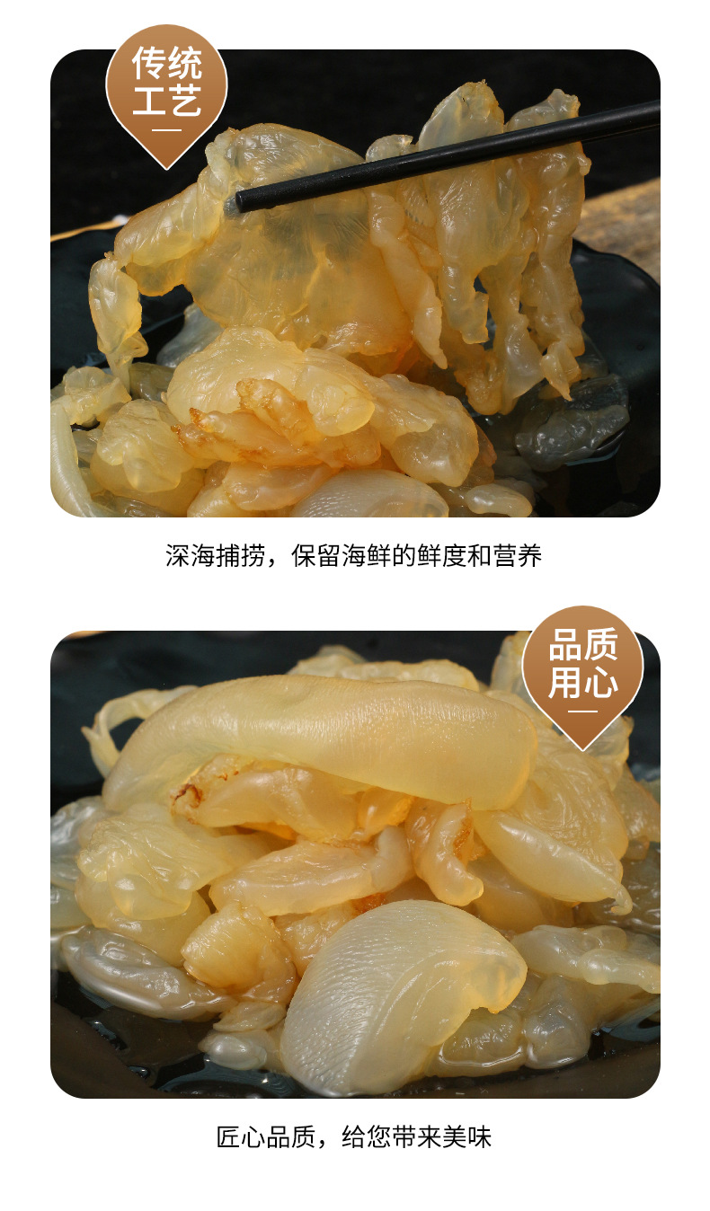 クラゲメーカーは、すぐに食べられる冷製クラゲ細切りとクラゲ皮のスナックを2025年新モデルで卸売で供給しています。