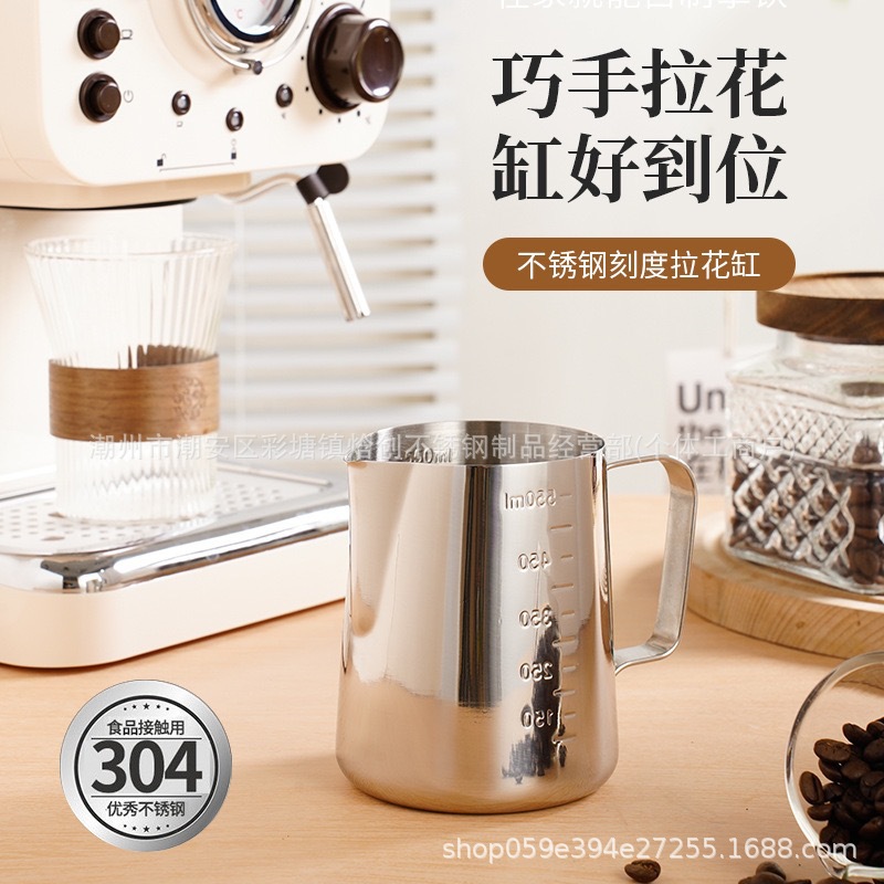 クロスボーダーラテアートポット 304 ステンレス鋼ミルク泡立てカップ尖った口ミルクシリンダースケールカップコーヒー器具ラテアートカップ