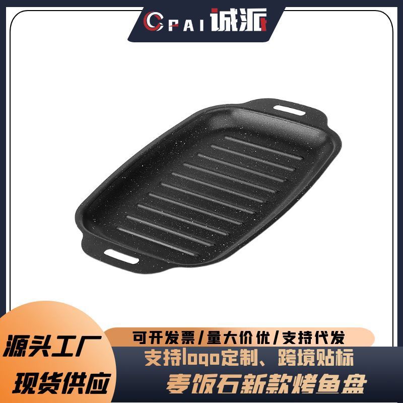 户外烤肉盘烤鱼盘麦饭石碳钢烧烤盘铁板烧长方形不粘煎盘家用商用