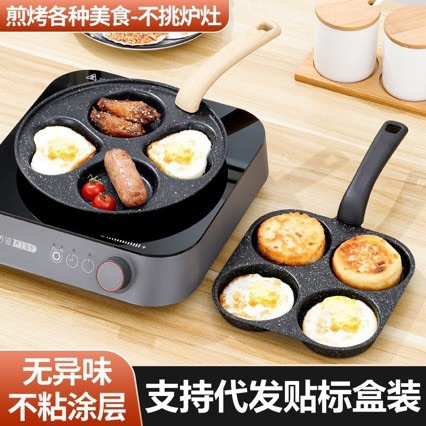 跨境新款煎蛋锅不粘小锅铁板锅早餐煎蛋神器不沾多格烤盘迷你小锅