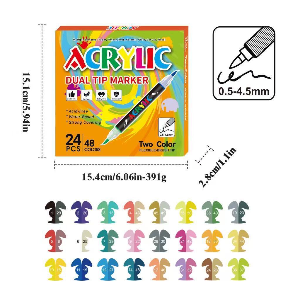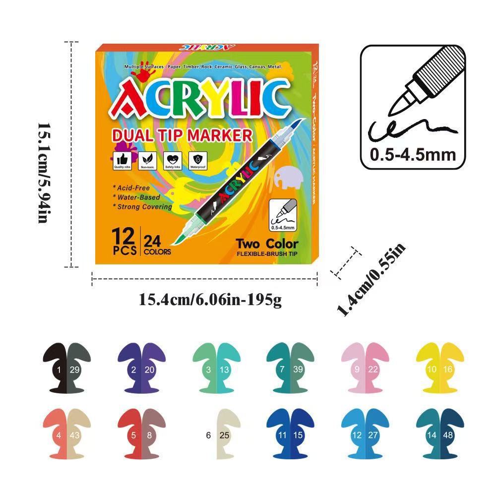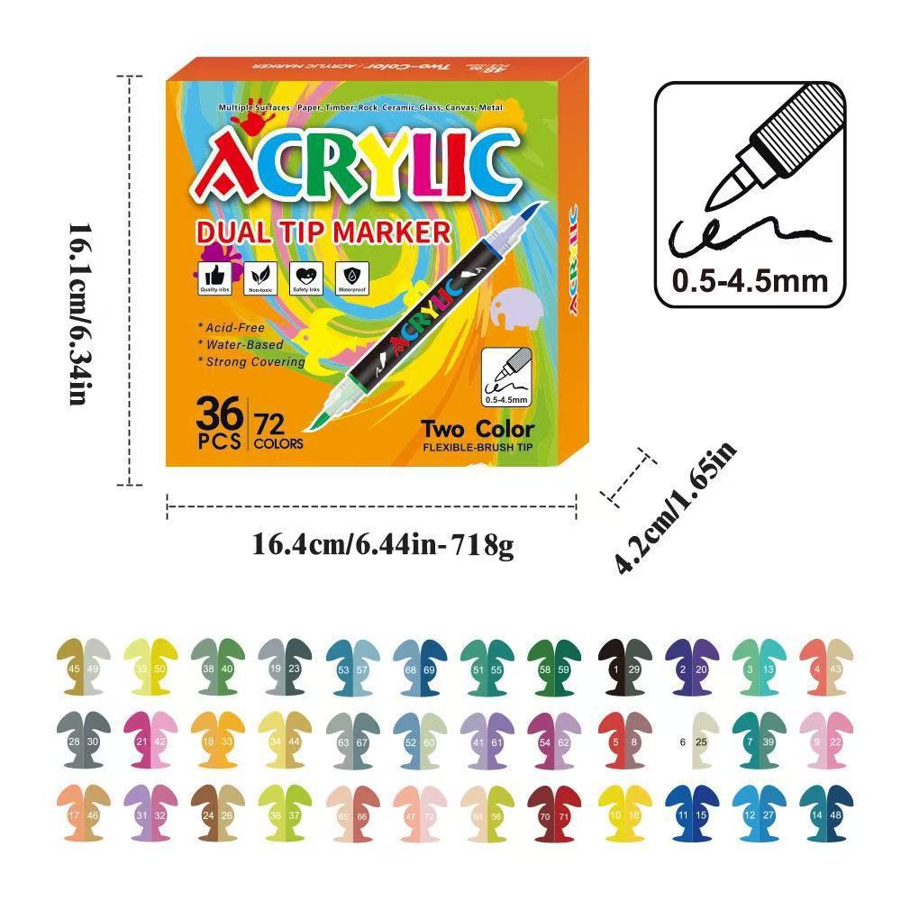 アクリルマーカー クロスボーダー 双頭 2色アクリルマーカー 24色 36色 水性マーカーセット ソフトヘッド