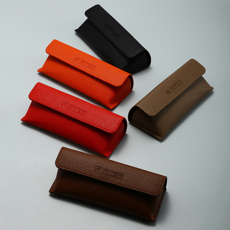 厂批新款彩色油边小皮夹眼镜盒 翻盖磁吸皮质太阳墨镜包 可印LOGO