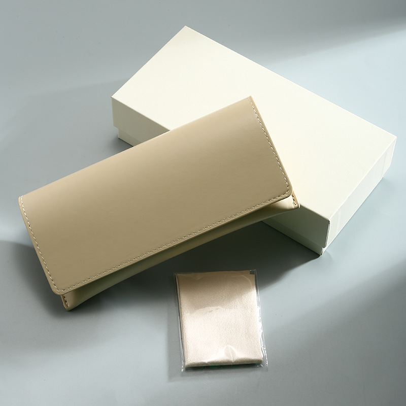 25新款眼镜盒套装奶油风米色磁吸皮夹太阳镜墨镜包三件套可印LOGO