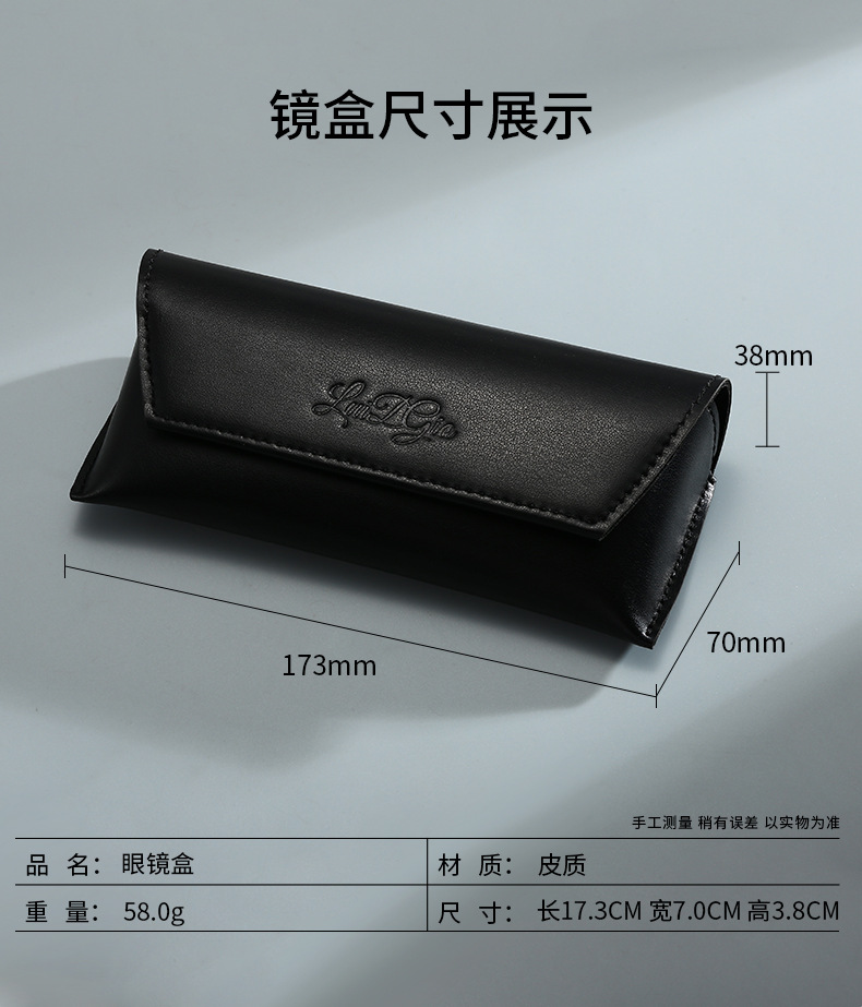 工場で生産された新しいスタイルの羊革レタースクエアメガネケース、大きなフレーム、フラットライト近視、抗青色光、老眼用の鉄箱