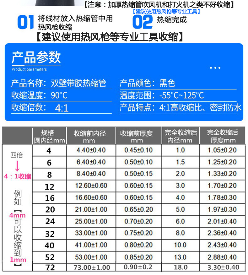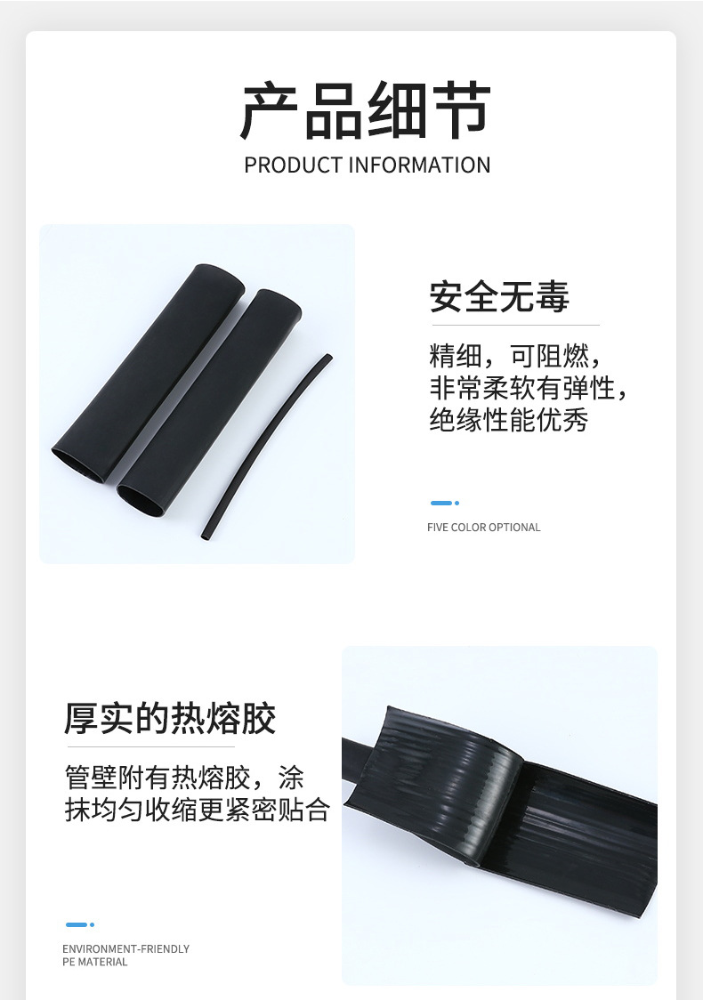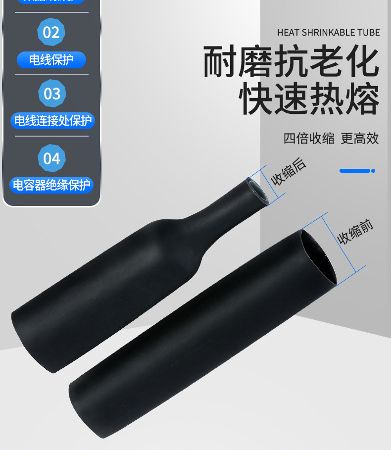 4 倍接着剤付き熱収縮チューブ絶縁スリーブ電気ケーブル増粘接着剤付き二重壁熱収縮チューブ 4-72 ミリメートル黒