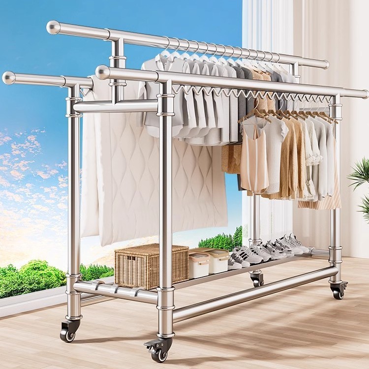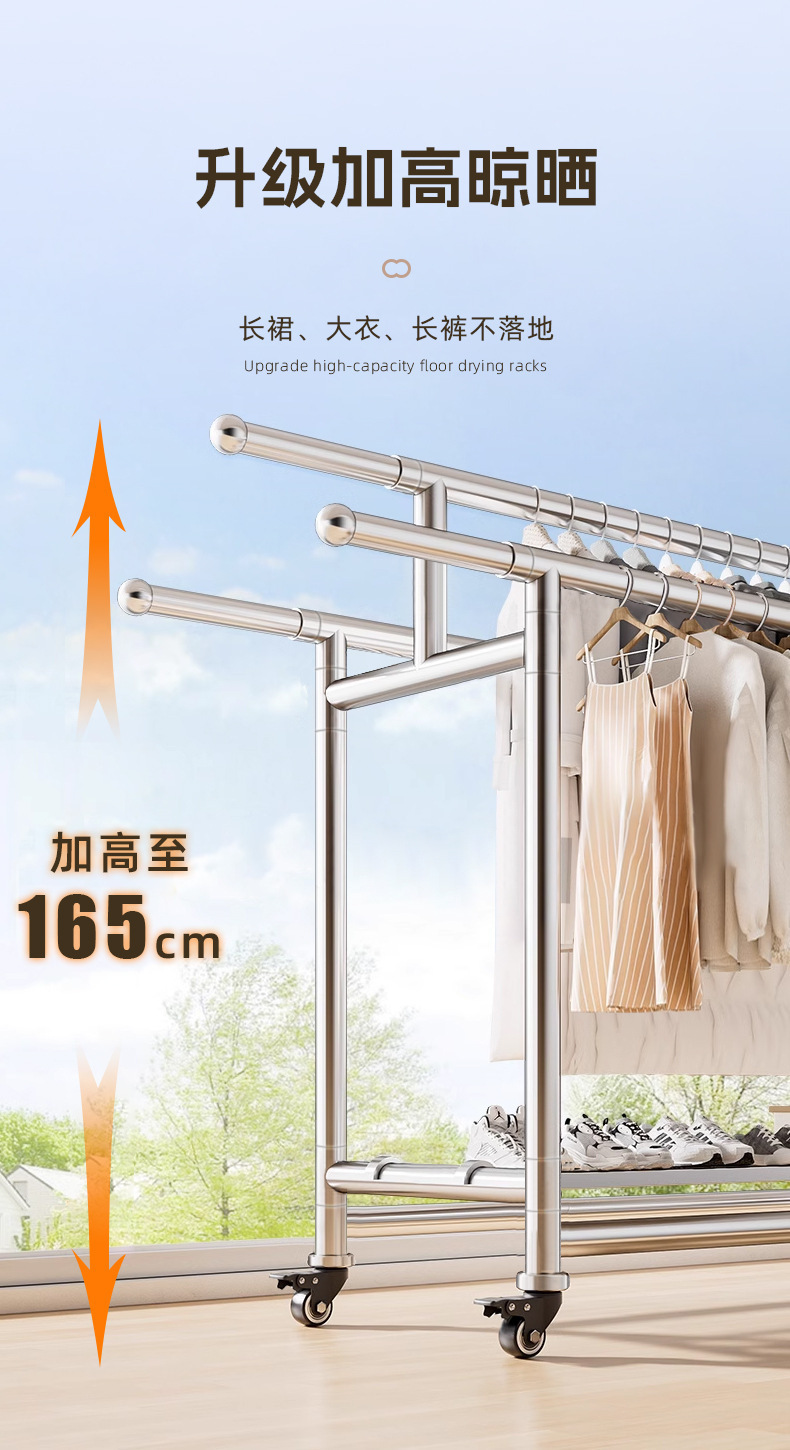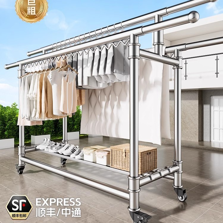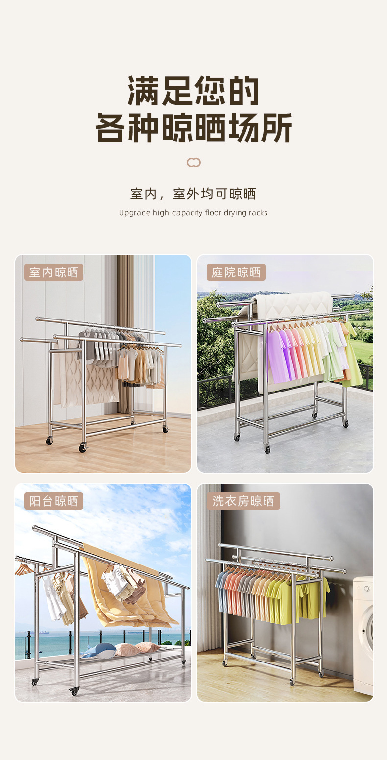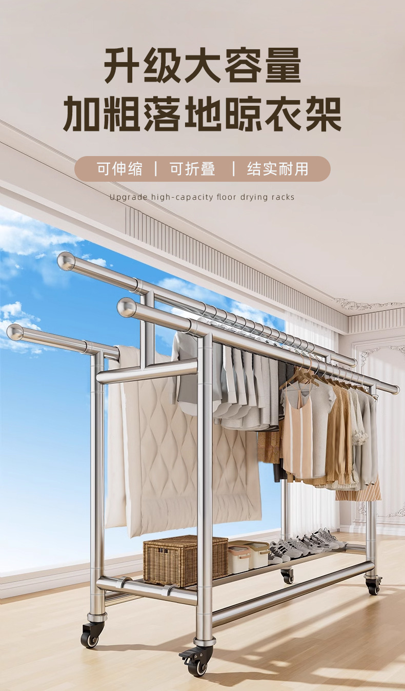 304ステンレス製床置きハンガー家庭用室内外ベランダ折り畳み移動伸縮棒干しハンガー