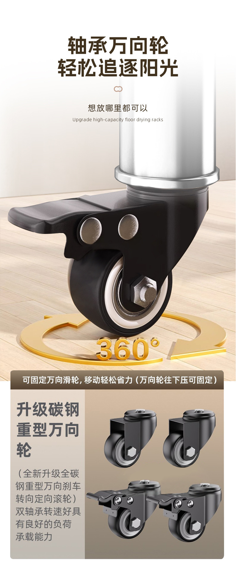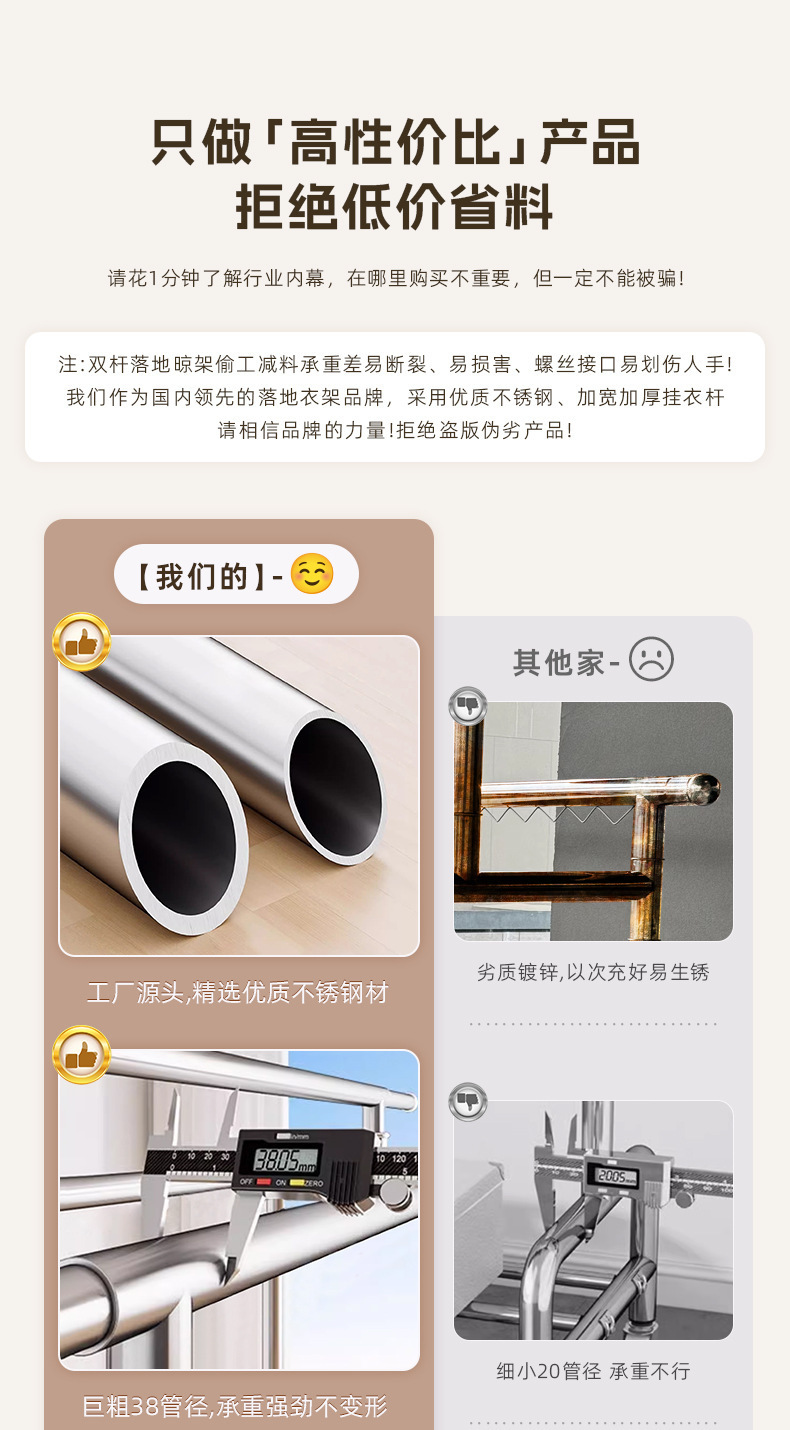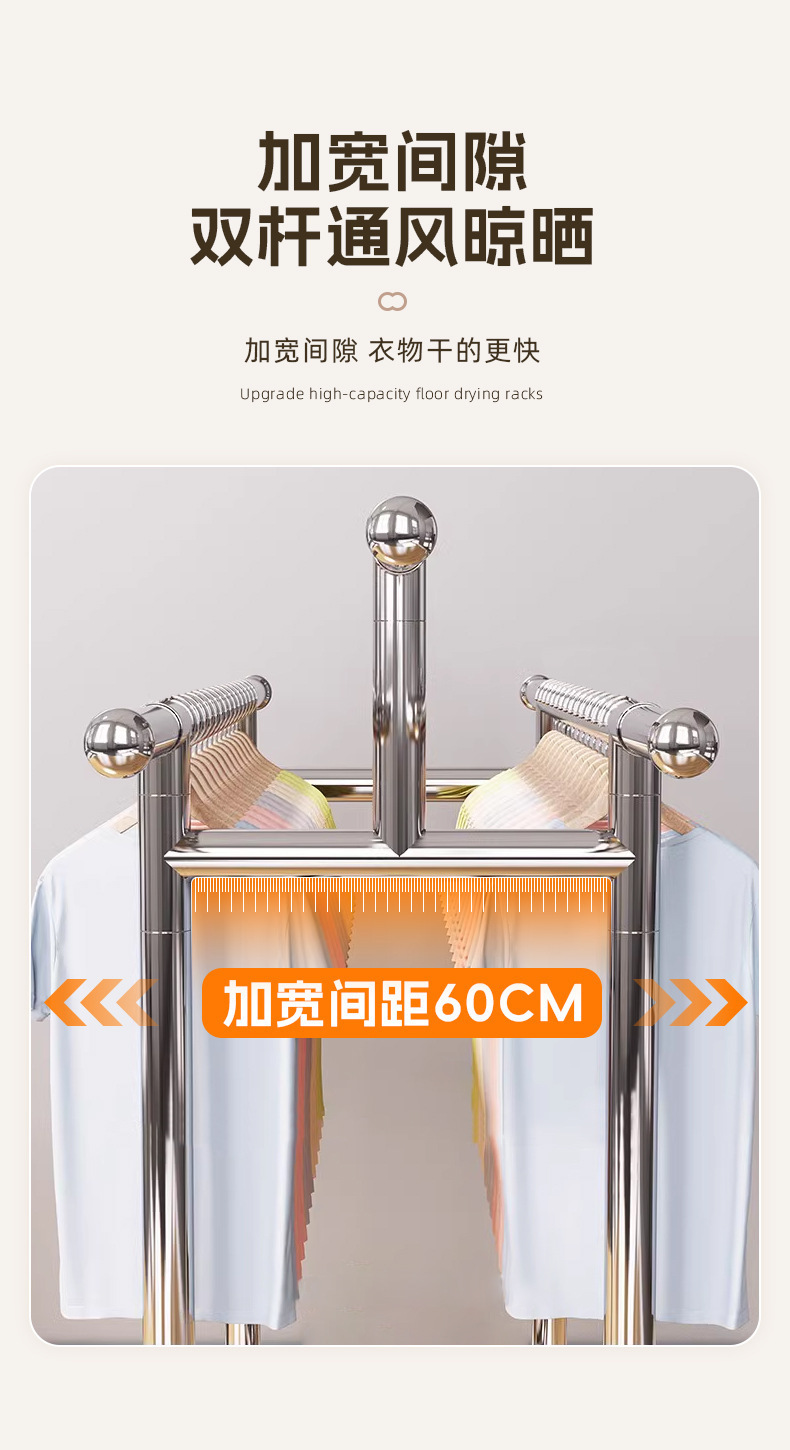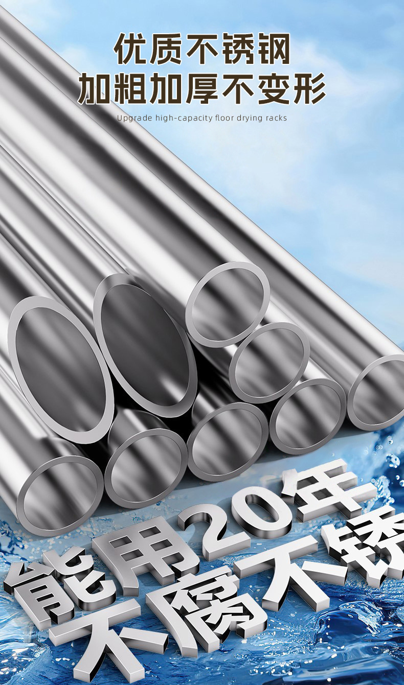 304ステンレス製床置きハンガー家庭用室内外ベランダ折り畳み移動伸縮棒干しハンガー