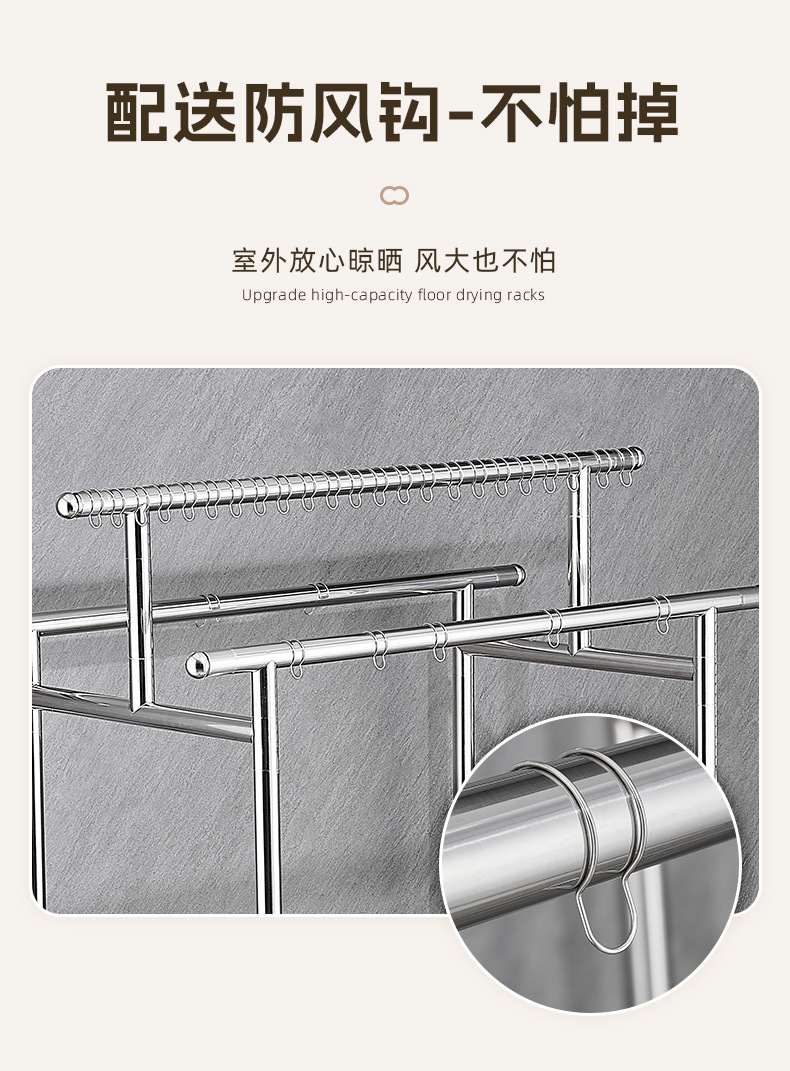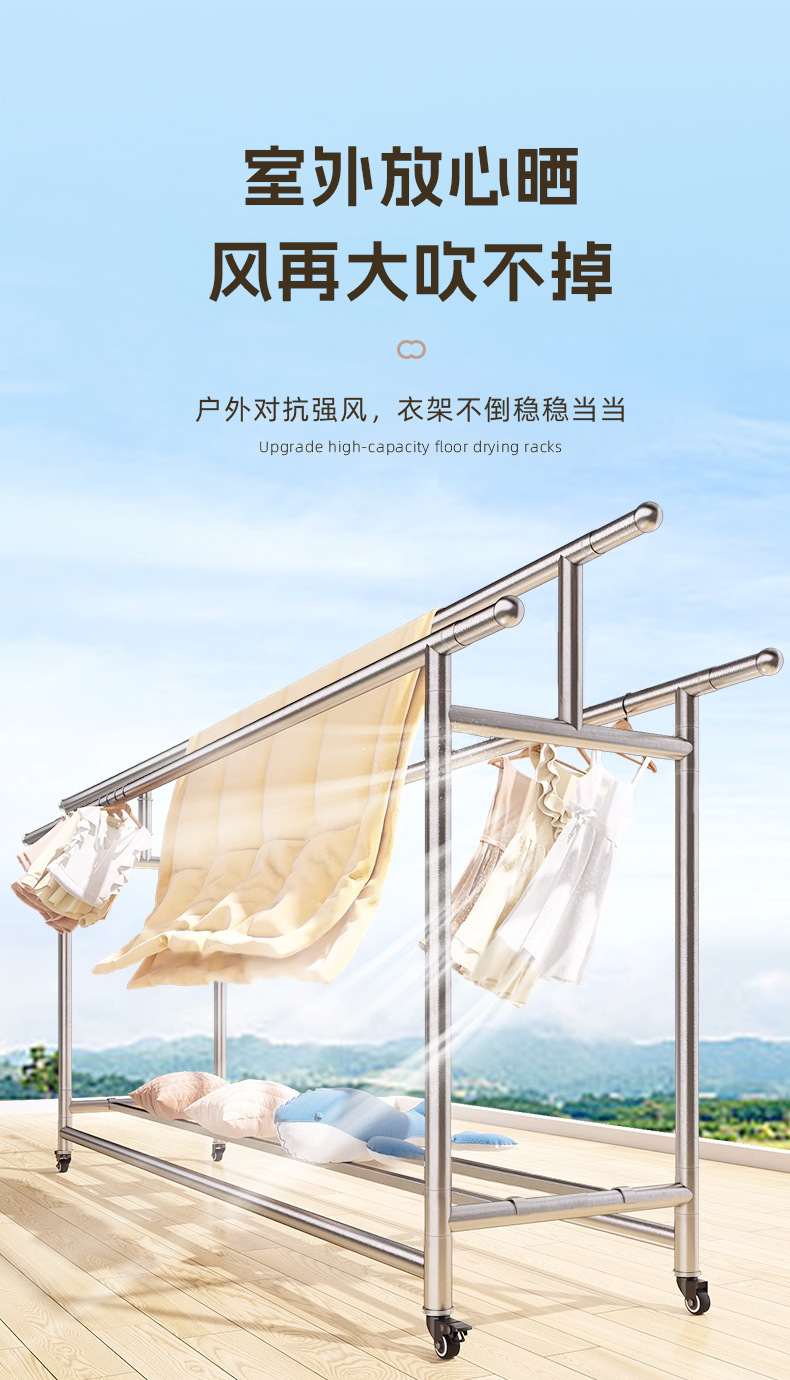 不锈钢移动晾衣架波浪防风挂钩双杆厚落地家用阳台室外晾挂晒被子