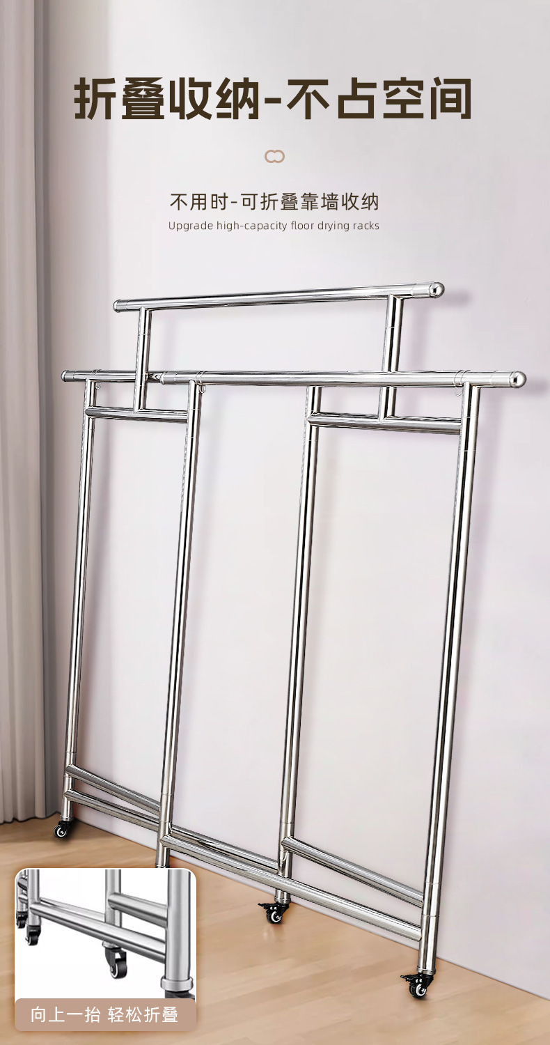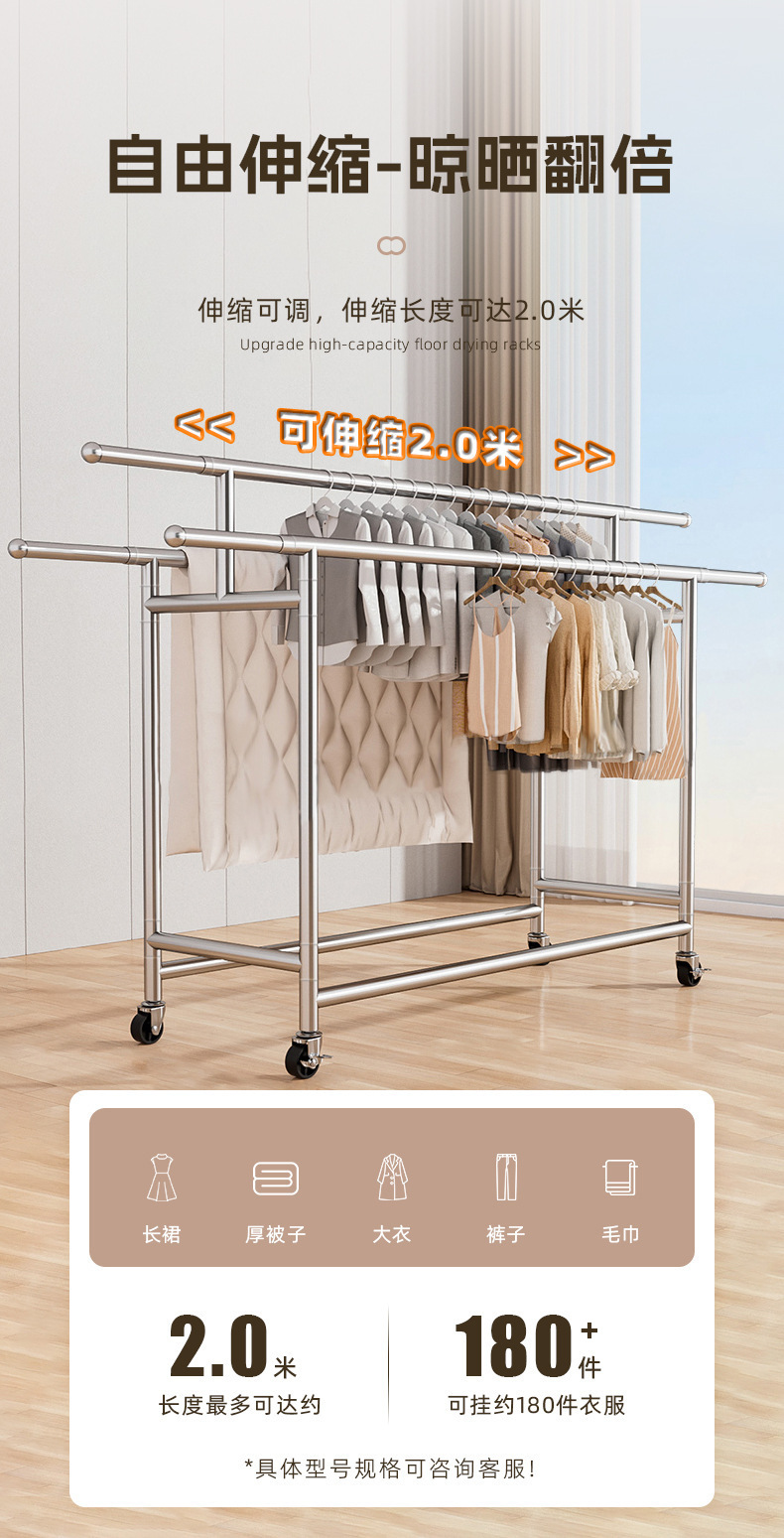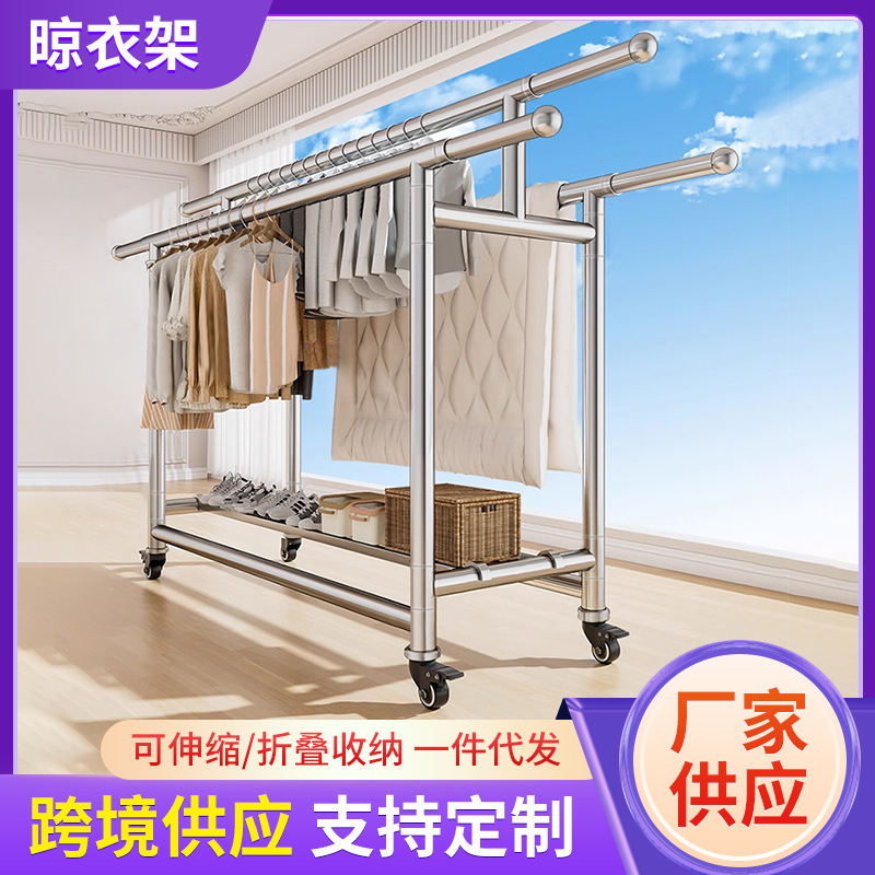 304ステンレス製ハンガー置き地三竿移動式伸縮折りたたみシンプル家庭用室内干し布団