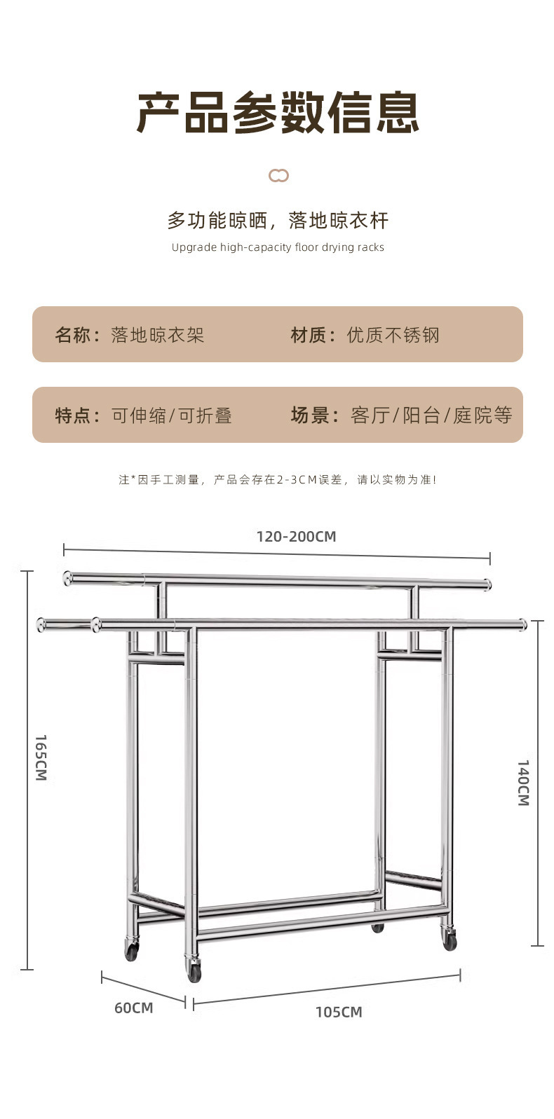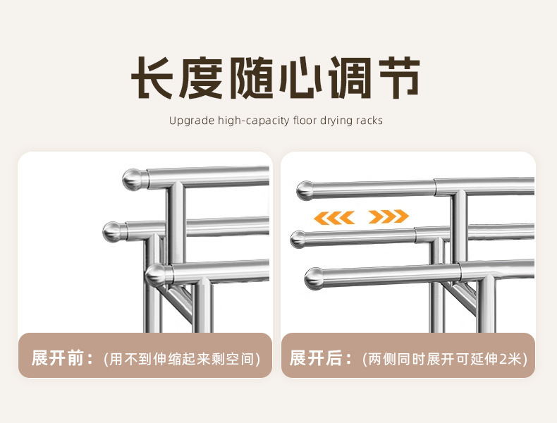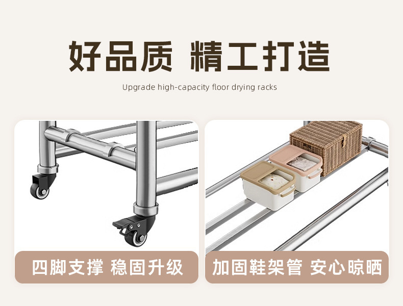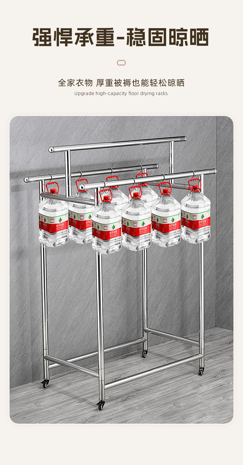 304ステンレス製ハンガー置き地三竿移動式伸縮折りたたみシンプル家庭用室内干し布団