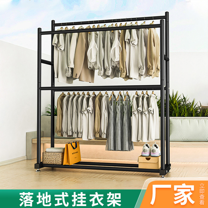 床置きハンガー二列ラック家庭用寝室移動バルコニー室内簡易多目的床置きハンガー