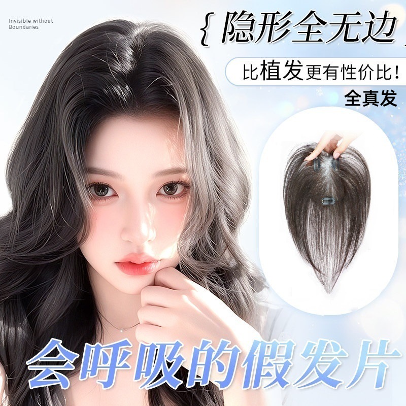 假发女裸感无边头顶增发量全真人发高颅顶遮白发刘海全手织补发片