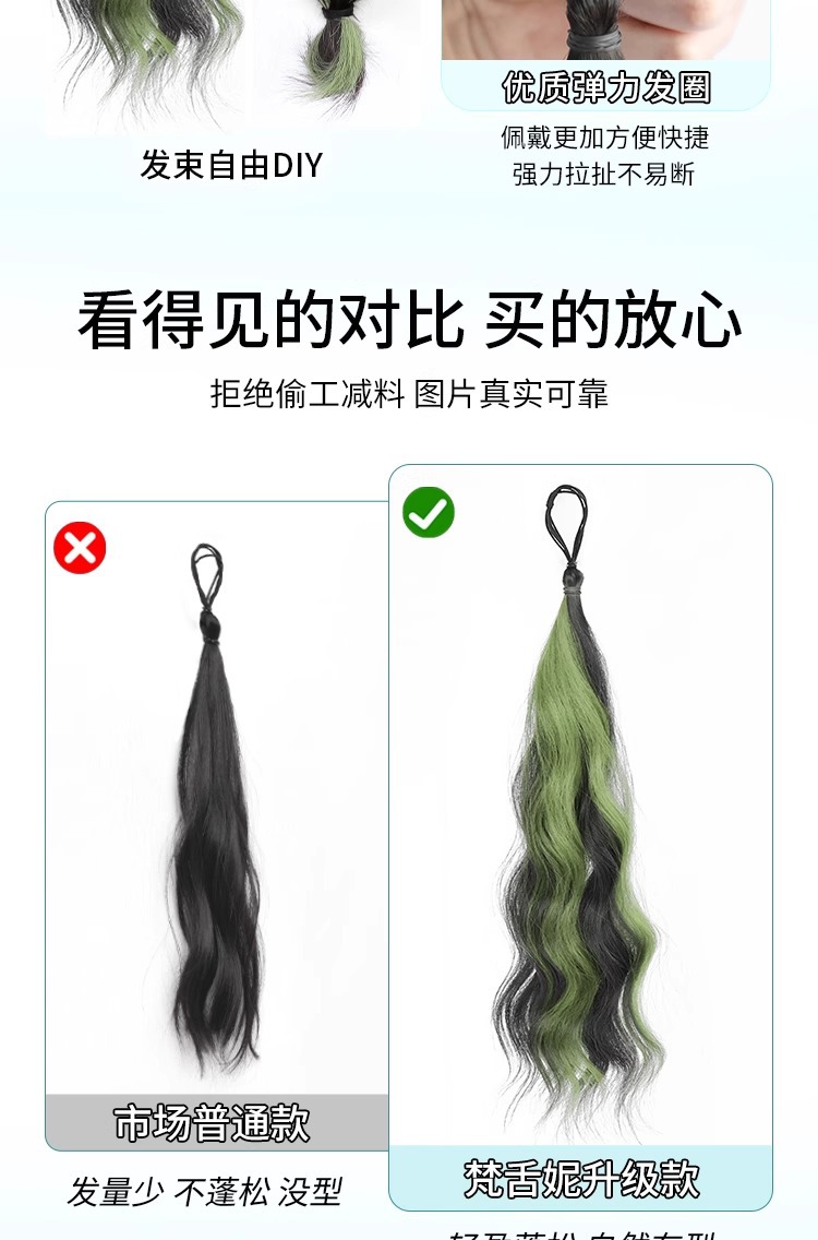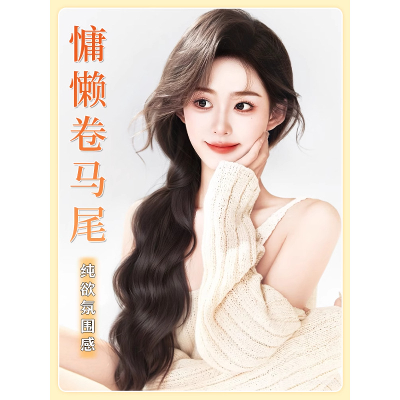 假发马尾辫子女长发慵懒甜酷仿真发绑带式皮筋低扎自然水波纹马尾
