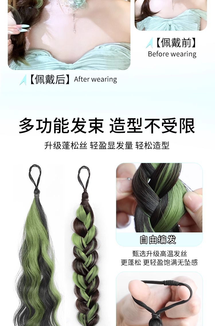 ウィッグポニーテール、ストラップオンショートポニーテール、ペアカーリーヘア、ハイポニーテール、シミュレーショングリップウィッグ、女性用ウィッグテール