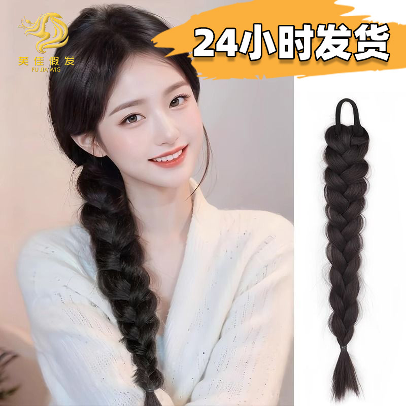 ウィッグ三つ編み女性 INS ローポニーテールクリップナチュラルシミュレーション完成品ダブルツイストロング三つ編みウィッグ三つ編みポニーテール