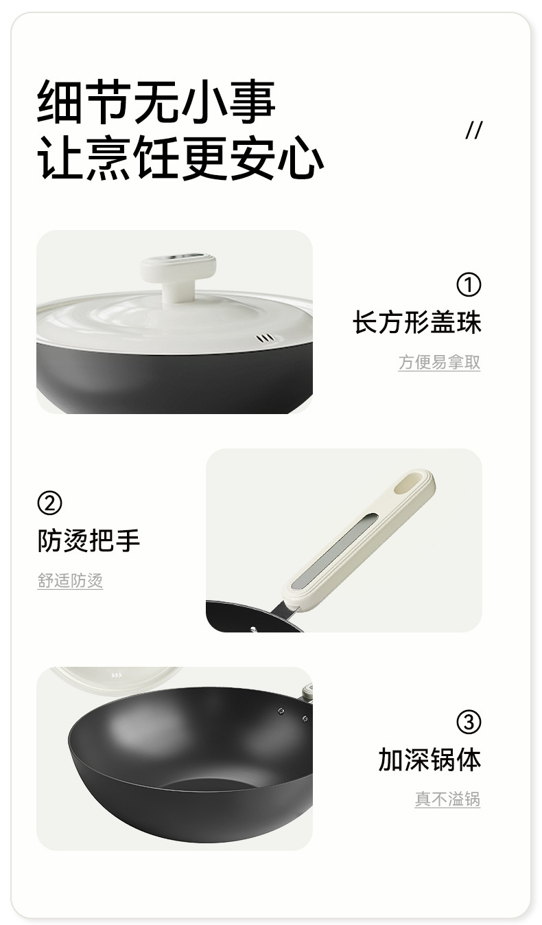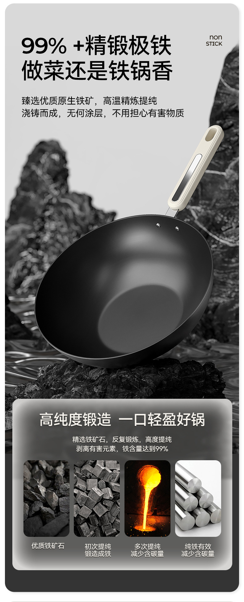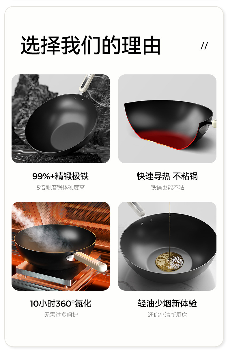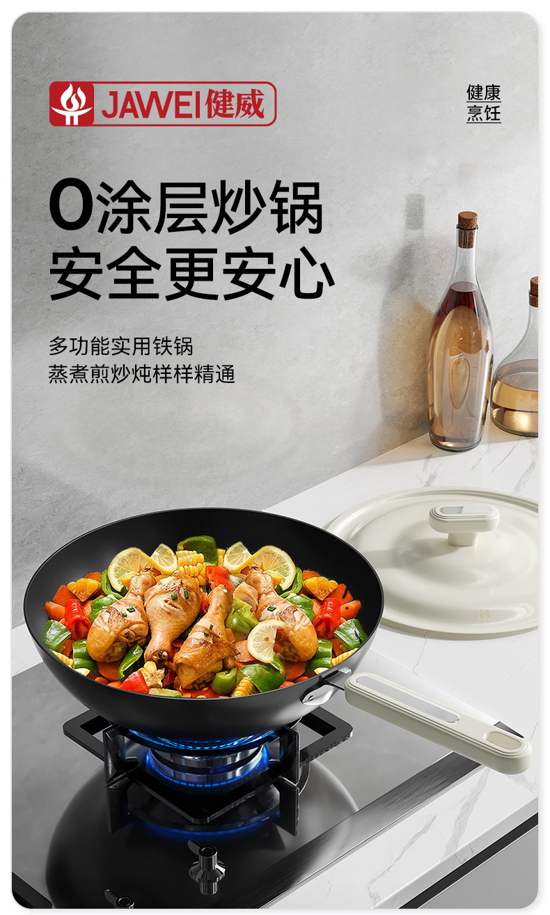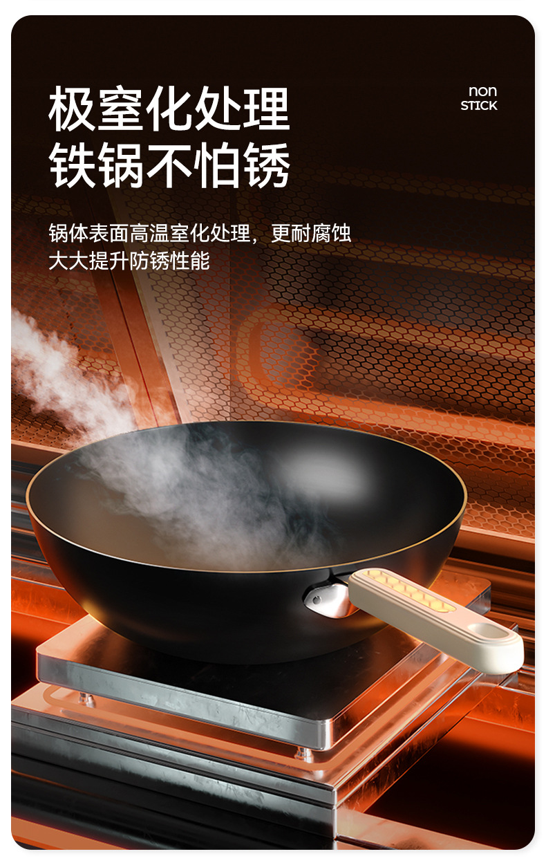 新型ノンコーティング中華鍋、開けない鉄鍋、多機能槌目中華鍋、万能コンロ、平底中華鍋
