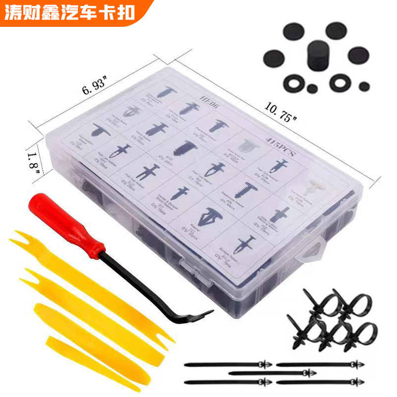 盒装415PCS卡扣 汽车门板内衬装饰保险杠塑料膨胀铆钉套装卡扣