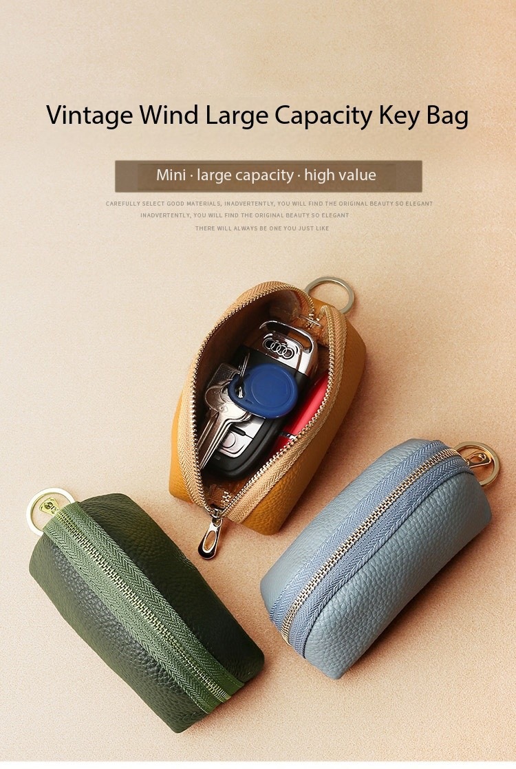 キー新しい男性と女性のジッパー大容量車の牛革キーバッグユニバーサル多機能ウエストロックキー収納