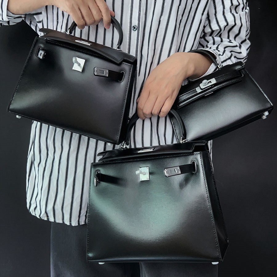 box皮光面牛皮凯莉包女2025新款二代真皮高级感单肩手提斜挎女包
