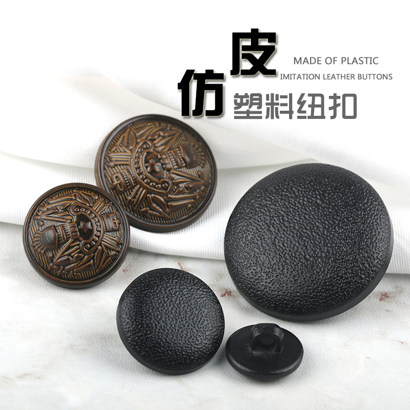 メーカーの卸売りプラスチックは革のボタンのコートの風衣のセーターなどのファッションのコートのボタンの黒色のつや消しのボタンをまねます。