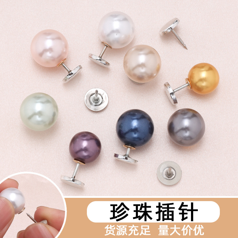 彩色珍珠插针免钉平底雪纺衬衫扣开衫免缝固定钉扣胸口衬衣暗扣