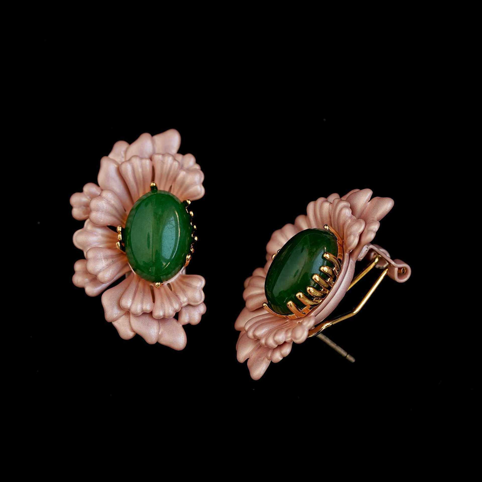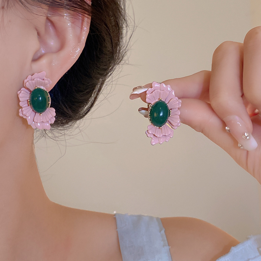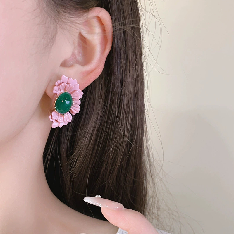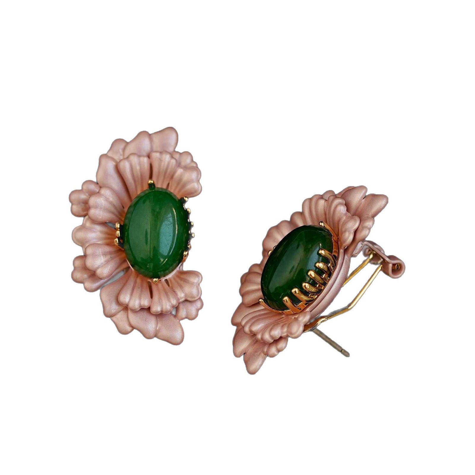 女性用のエレガントでクラシックなピンクのベゴニアフラワーイヤリング、フレンチニッチ、甘くて絶妙で多用途の文学イヤリング。