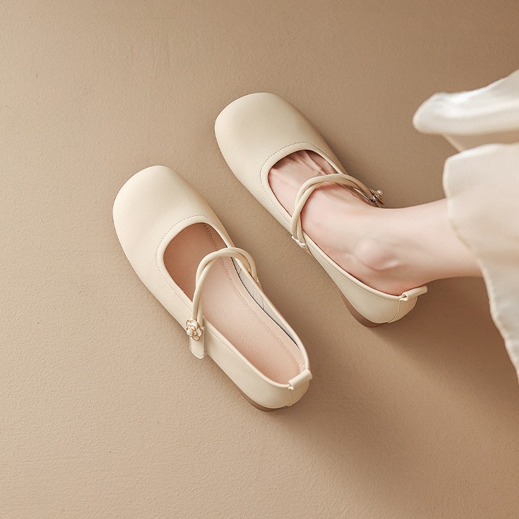 在庫あり フル牛革バージョン_ソフトソール本革メリージェーンシューズレディースシングルシューズワンラインストラップ浅口フラットスモールレザーシューズスクープシューズ