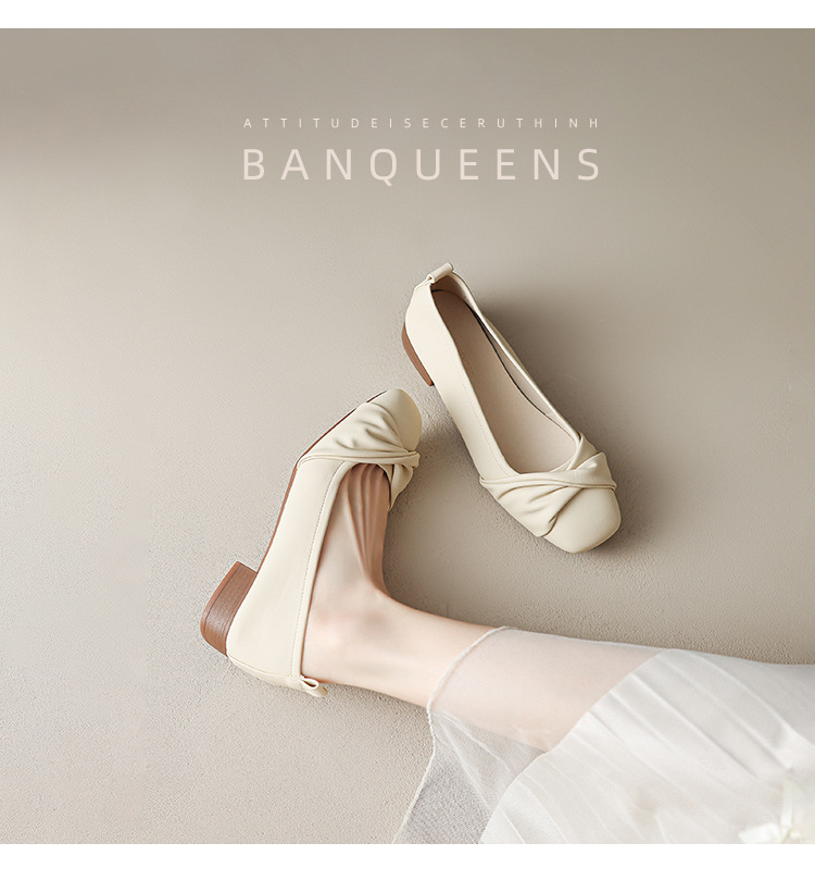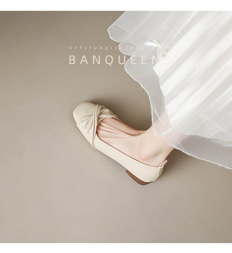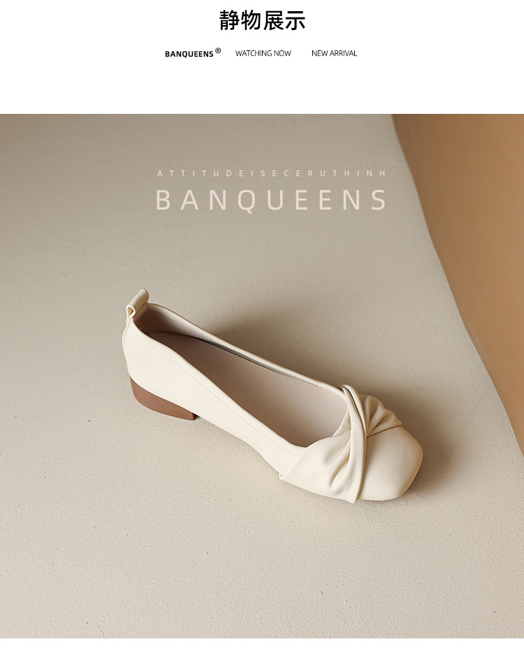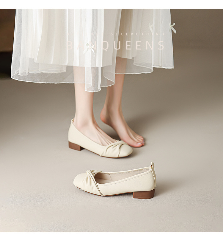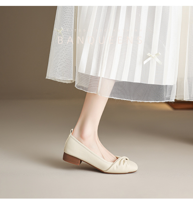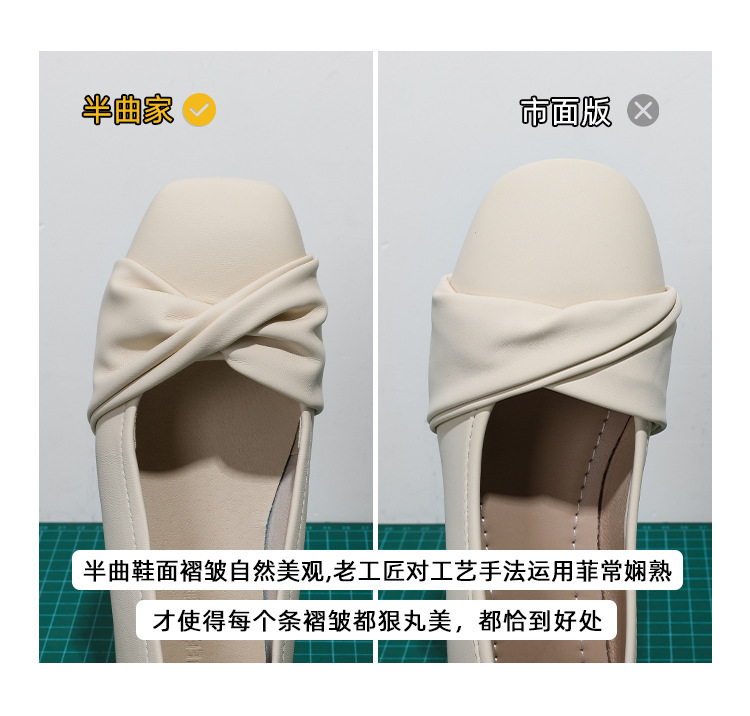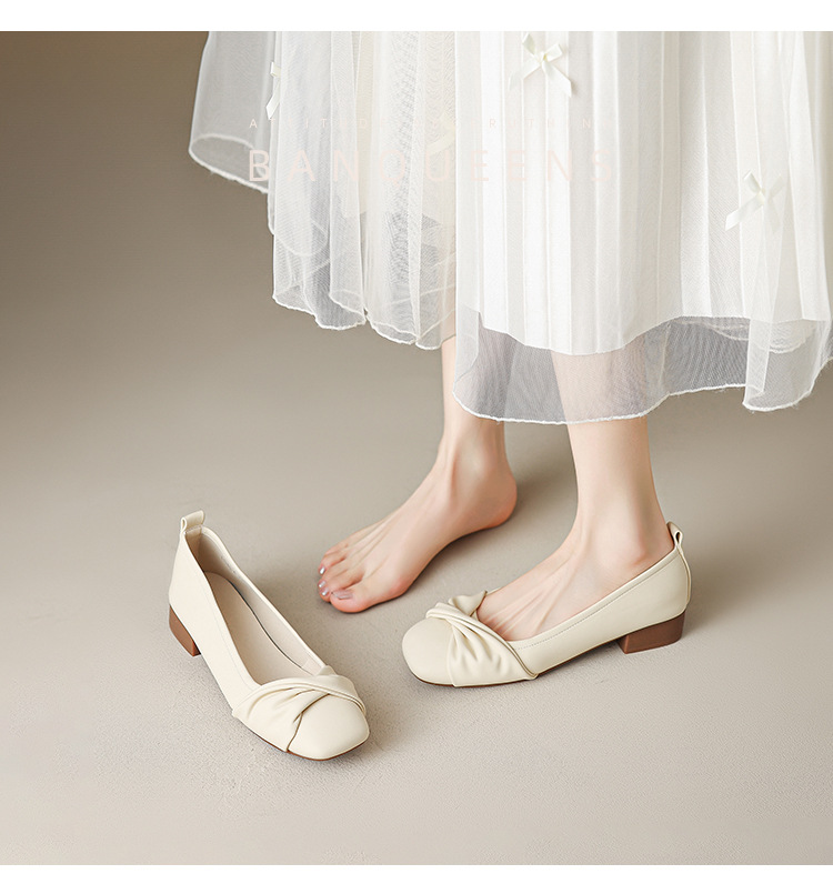 牛皮版~真皮奶奶鞋女2025年新款法式百搭浅口方头软皮平底单鞋女.