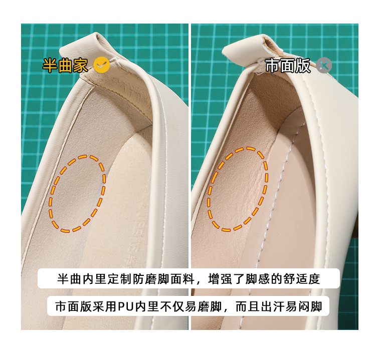 超软!!真皮法式低跟方头裸色玛丽珍鞋旗袍单鞋工作皮鞋通勤女鞋