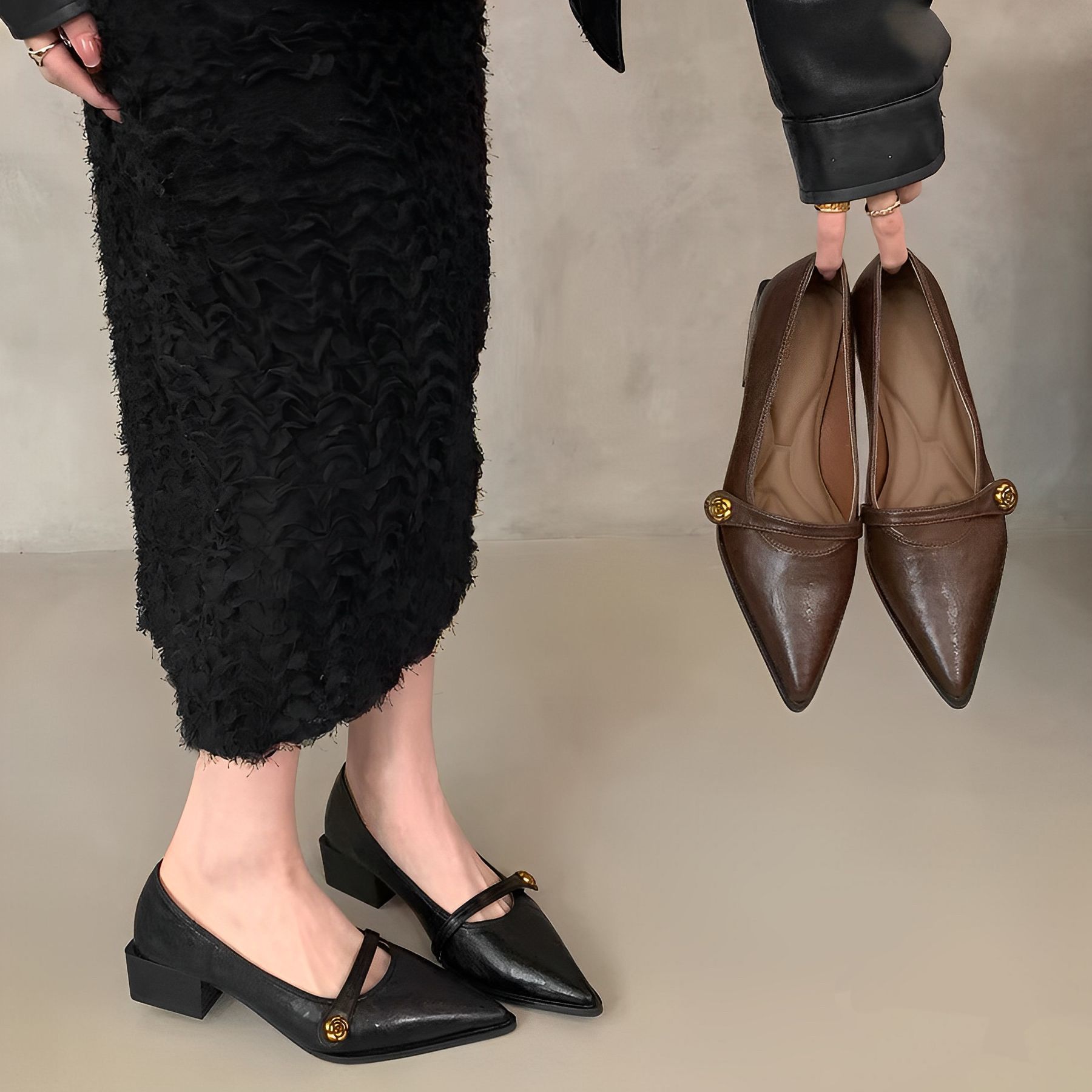 本革バージョン~フレンチレトロ2025カメリアメリージェーンシューズ太ヒールワンストラップソフトレザーローヒールシューズ女性用
