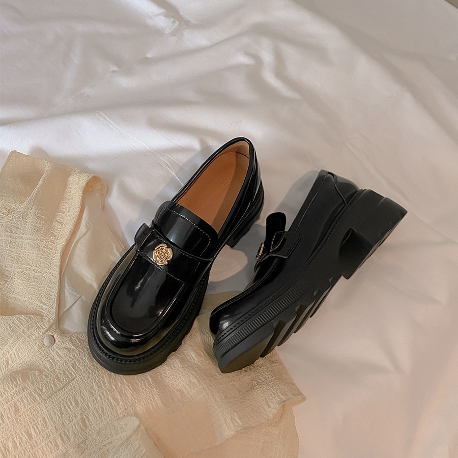 牛革版 ~ 英倫風楽福靴2024秋冬新作丸首百合復古厚い底高小革靴女