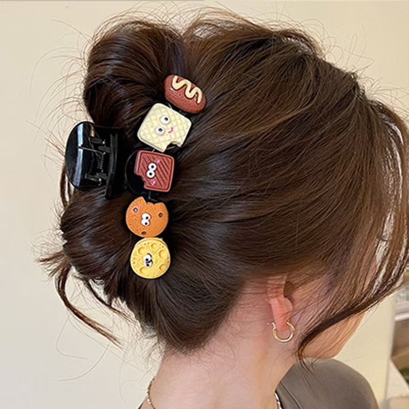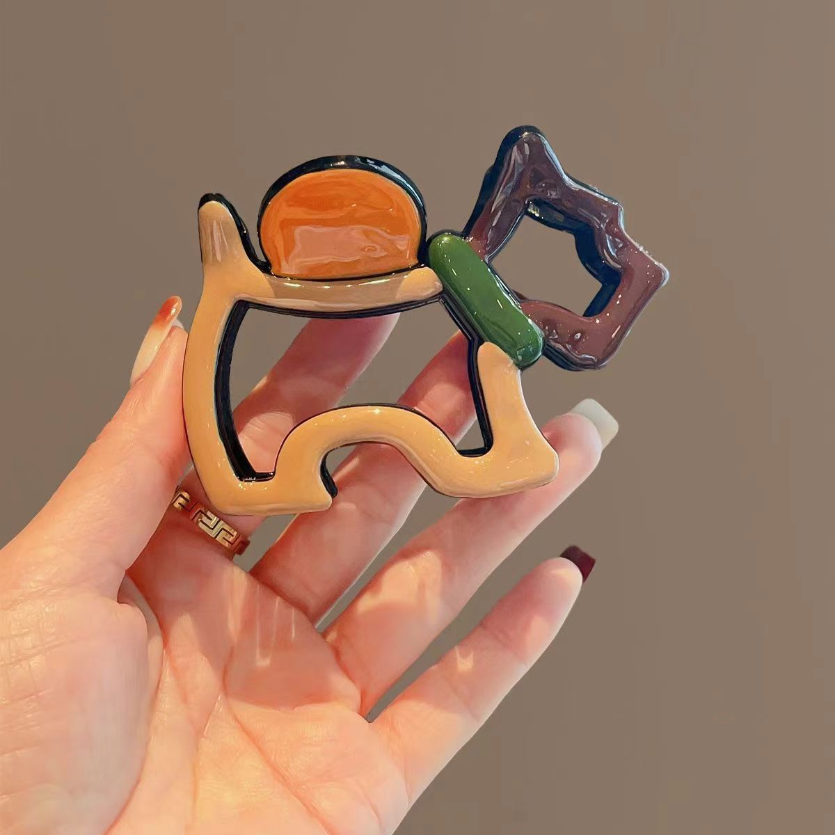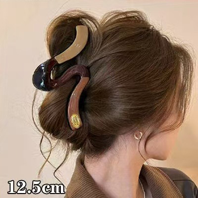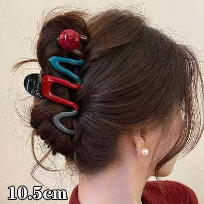 フレンチシンプルなコントラストカラーの女性用大型ウェーブグリッパー、ハイエンドシャーククリップ2025新しい後頭部ヘアアクセサリー