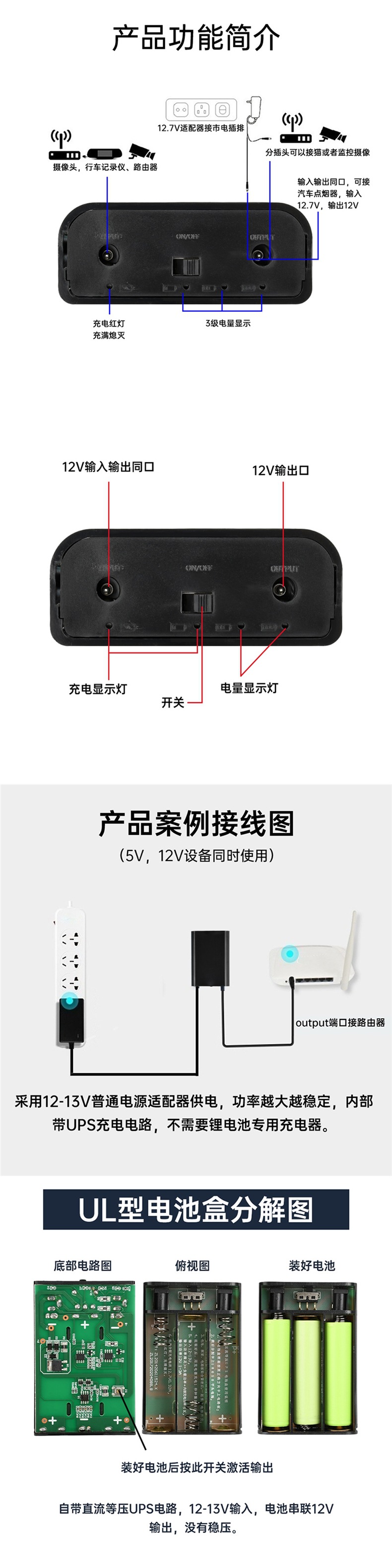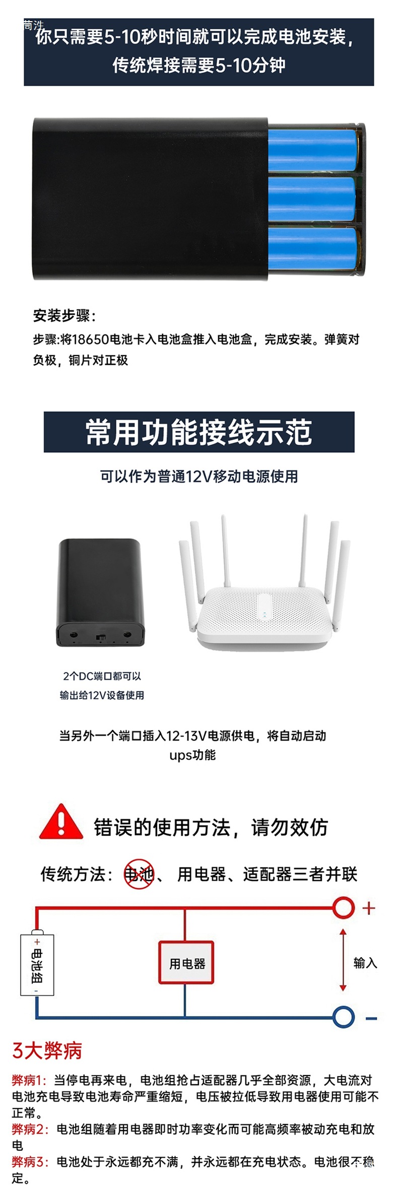 DC12V 等圧定電流回路 3 セクション 18650 溶接不要のパワーバンク DIY キット 無停電 UPS バッテリーボックス