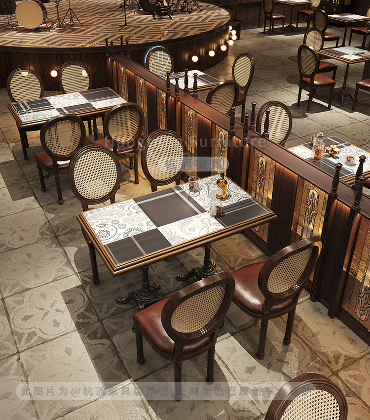 レトロな洋食レストラン、パブのテーブルと椅子、バーカフェのテーブルと椅子、カウチソファ、テーマレストランのテーブルと椅子の組み合わせ